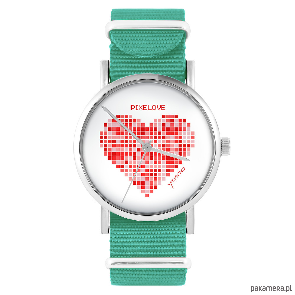 Zegarek - Serce pikselowe - turkusowy, nylonowy