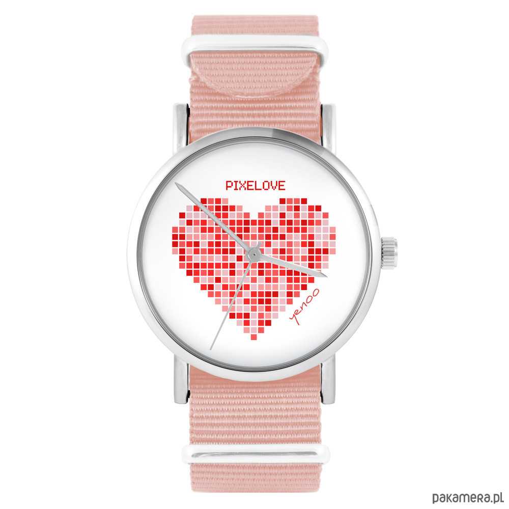 Zegarek - Serce pixelove - brzoskwiniowy róż