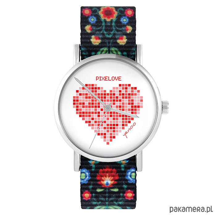 Zegarek - Serce pixelove - folk czarny, nato