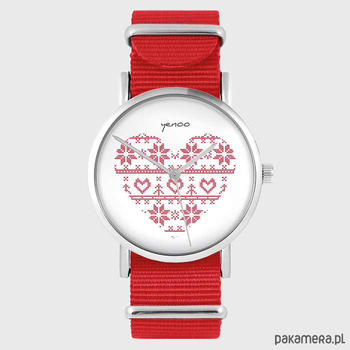 Zegarek - Serce skandynawskie - czerwony, nato