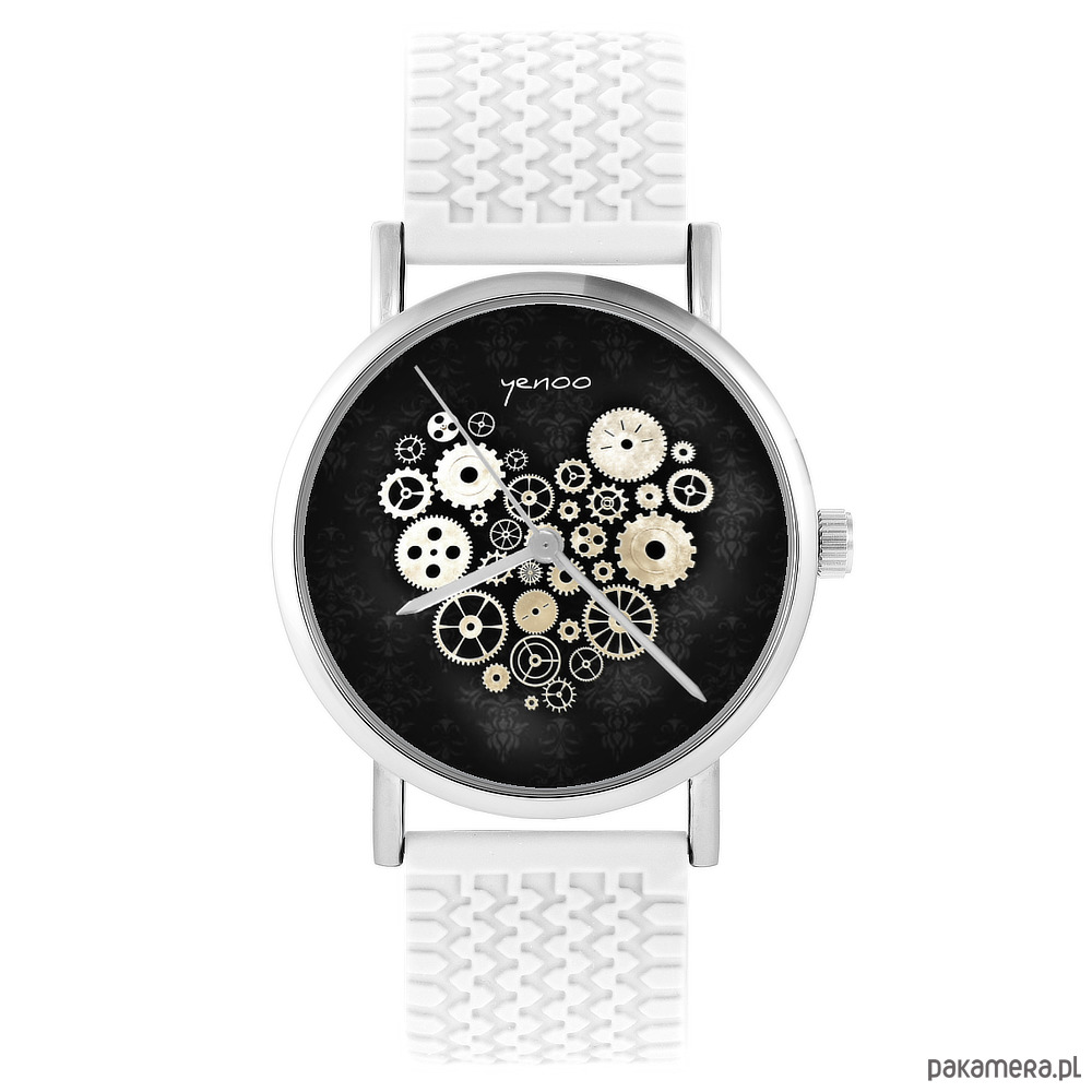 Zegarek - Serce steampunk 2 - silikonowy, biały