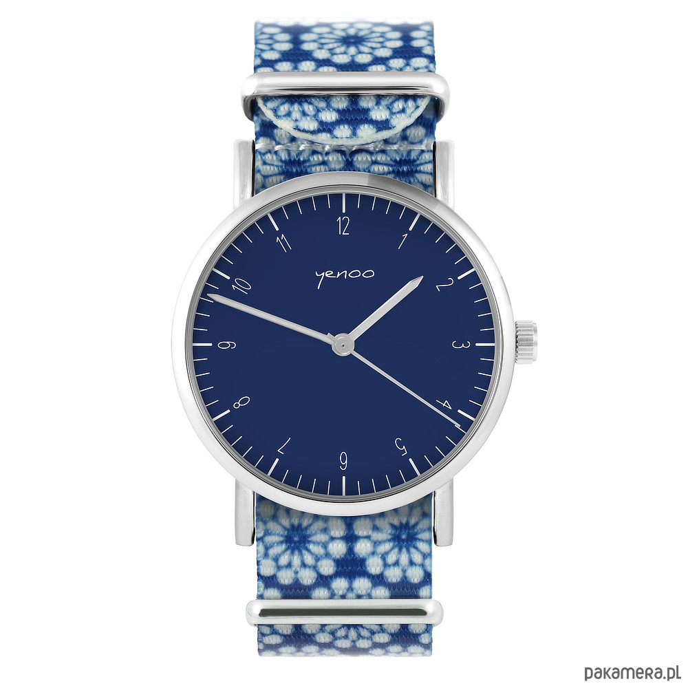 Zegarek - Simple granatowy - niebieski, kwiaty