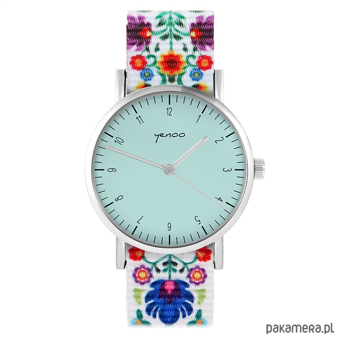 Zegarek - Simple, turkusowy - folk biały, nato