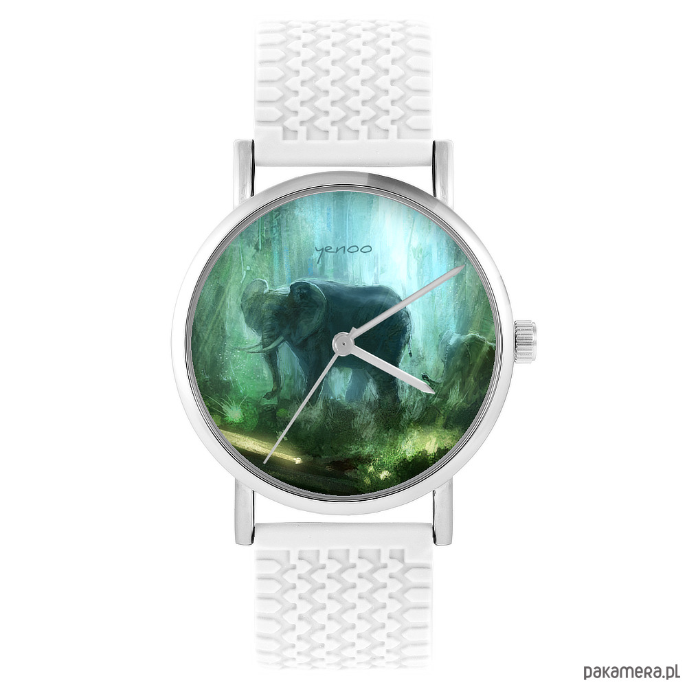 Zegarek - Słoń, dżungla - silikonowy, biały