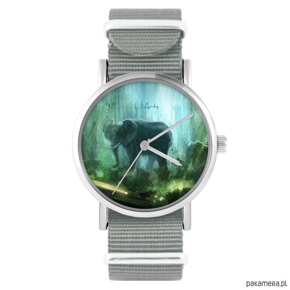 Zegarek - Słoń, dżungla - szary, nylonowy