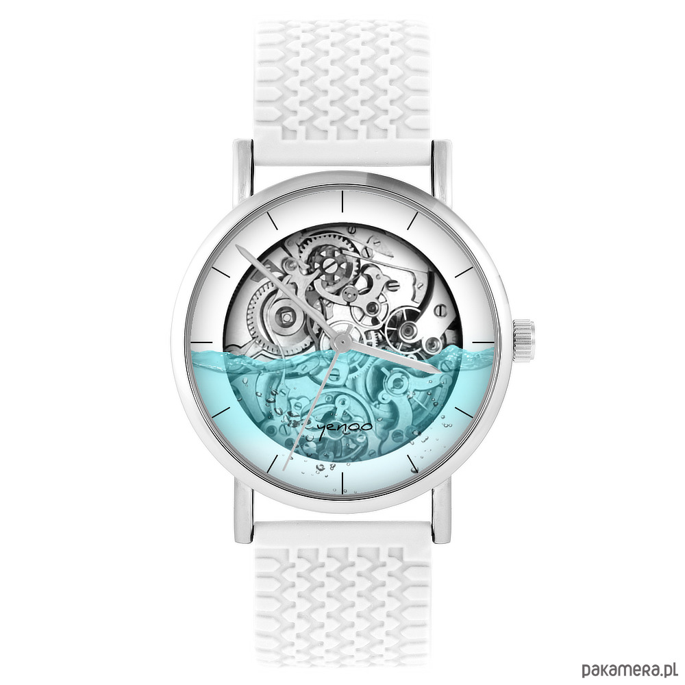 Pasek wykonany jest z silikonu z oryginalnym wytłoczonym wzorem, zapinanie na regulowaną klamrę.