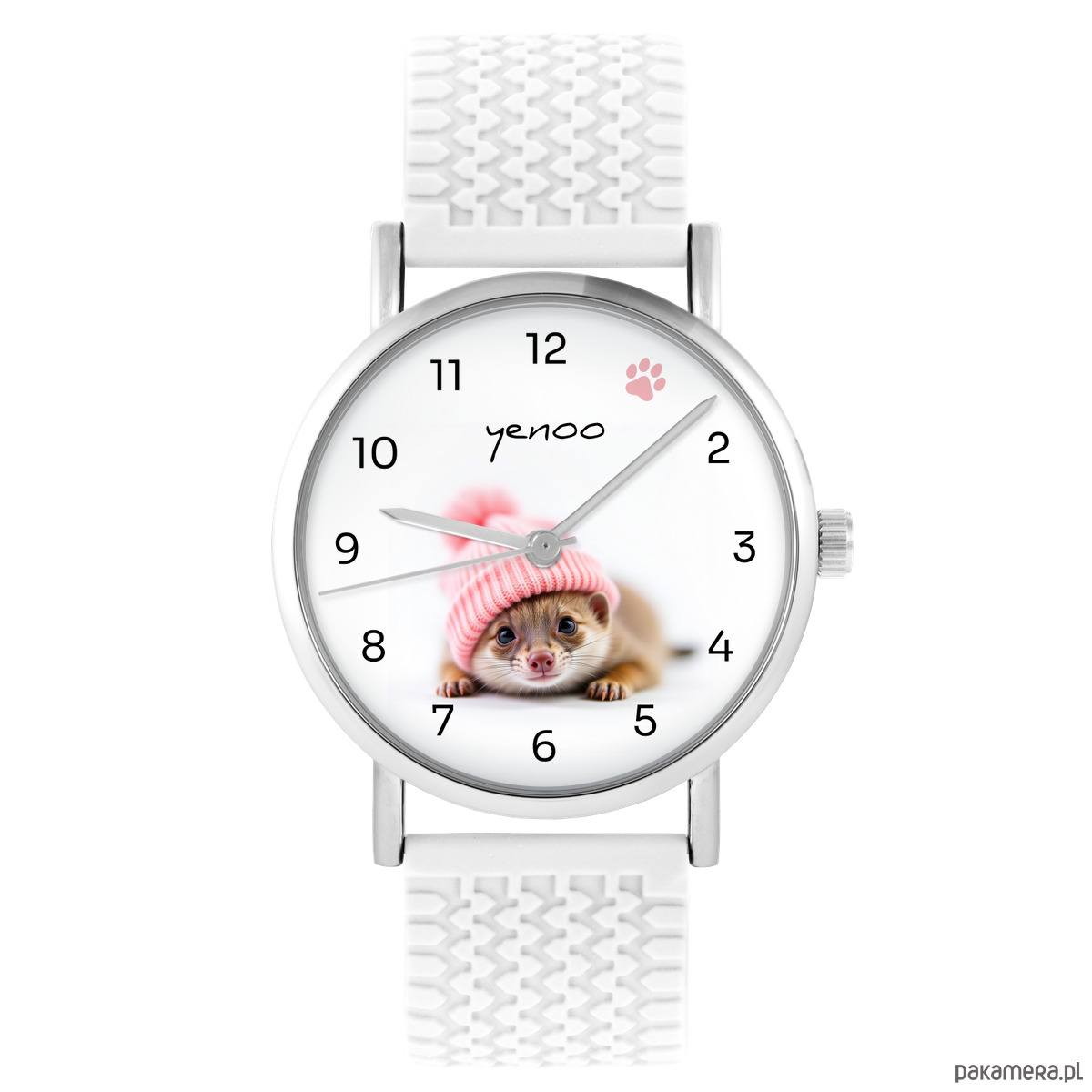 Pasek wykonany jest z silikonu z oryginalnym wytłoczonym wzorem, zapinanie na regulowaną klamrę.