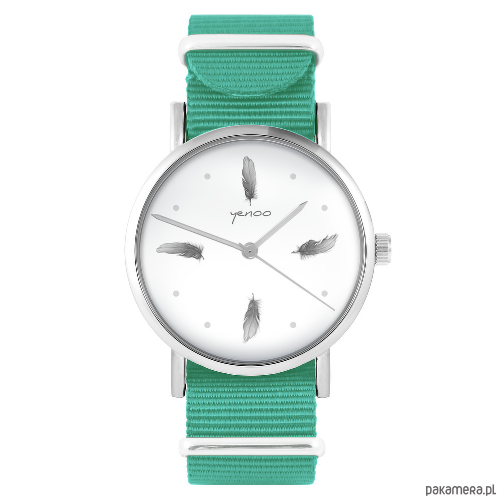 Zegarek - Szare piórka - turkusowy, nylonowy