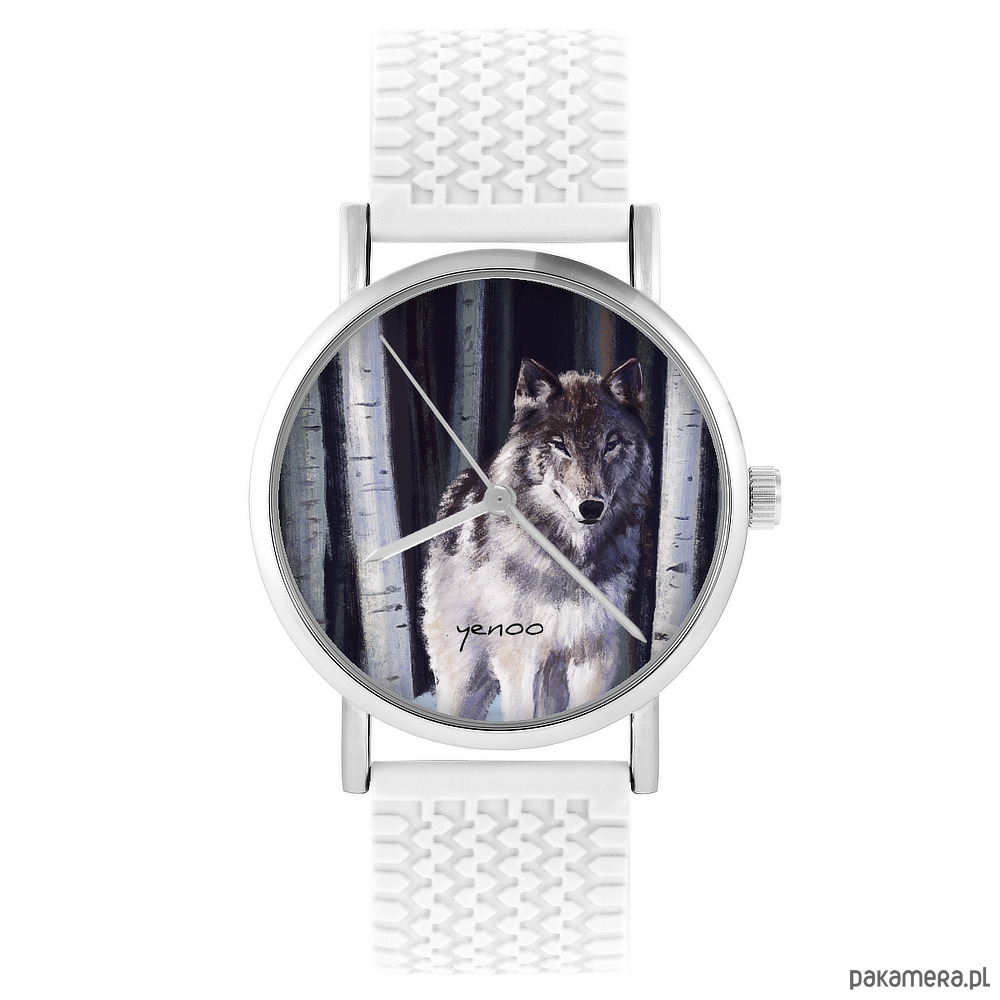 Zegarek - Szary wilk - silikonowy, biały