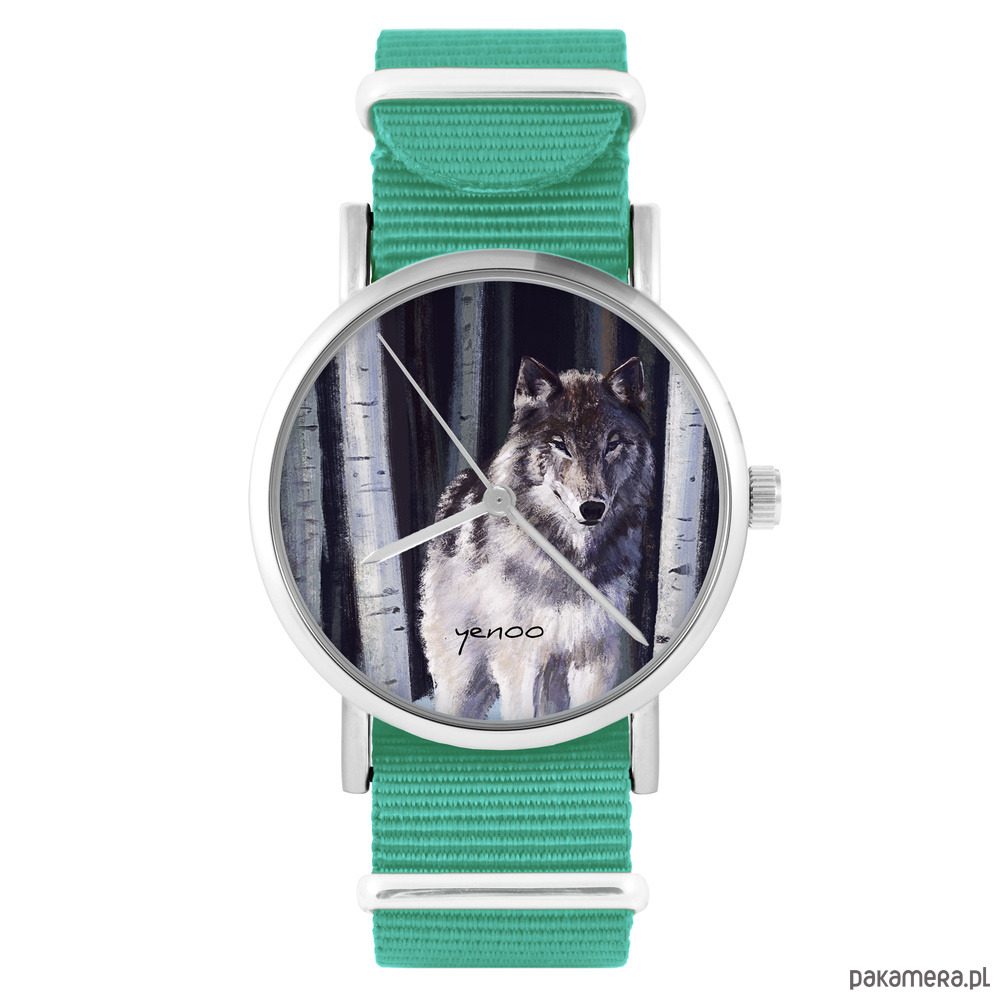 Zegarek - Szary wilk - turkusowy, nylonowy