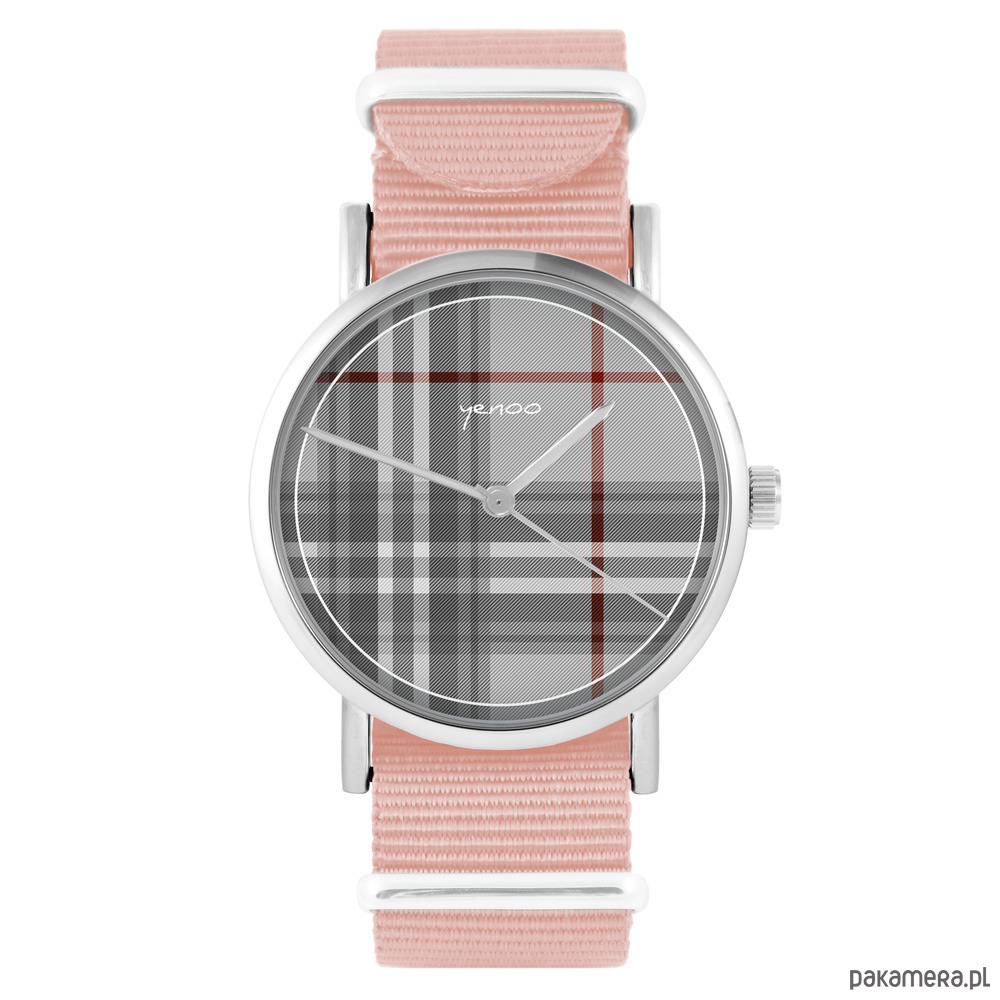 Zegarek - Szkocka krata - brzoskwiniowy róż