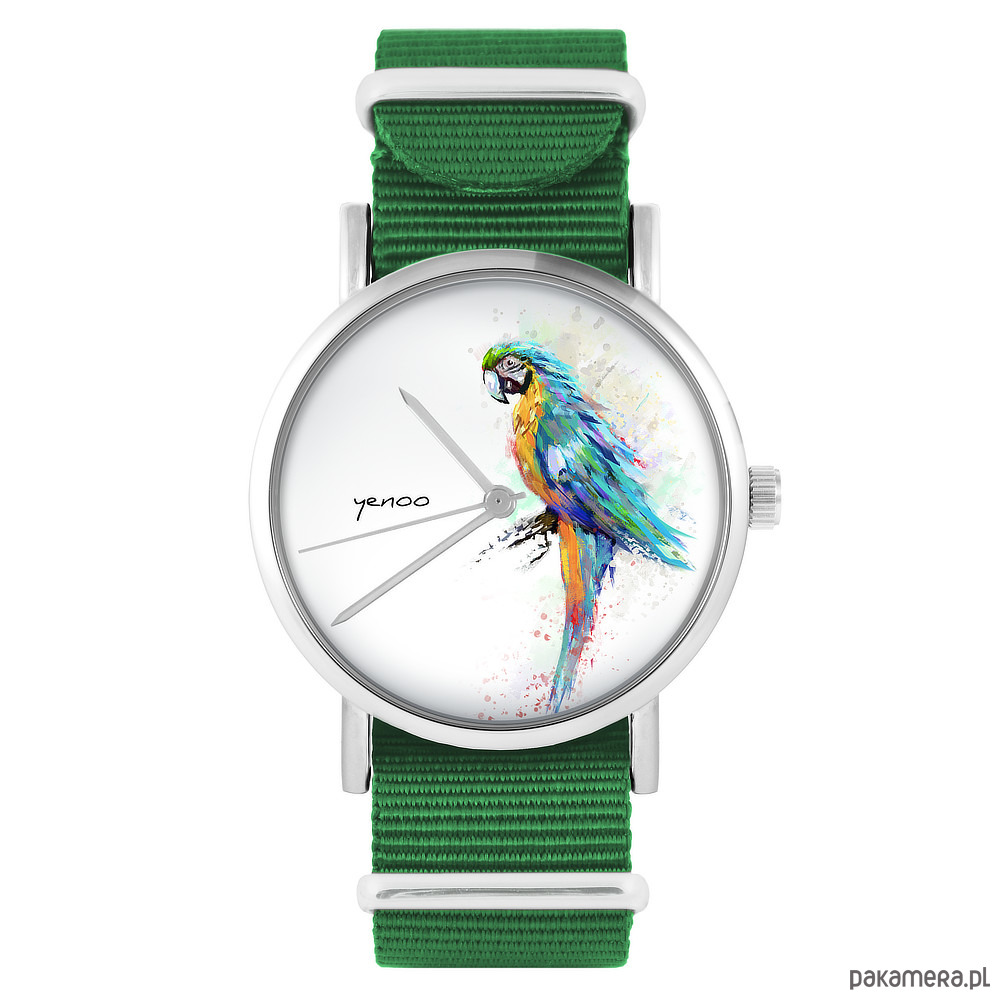 Zegarek - Turkusowa papuga - zielony, nylonowy