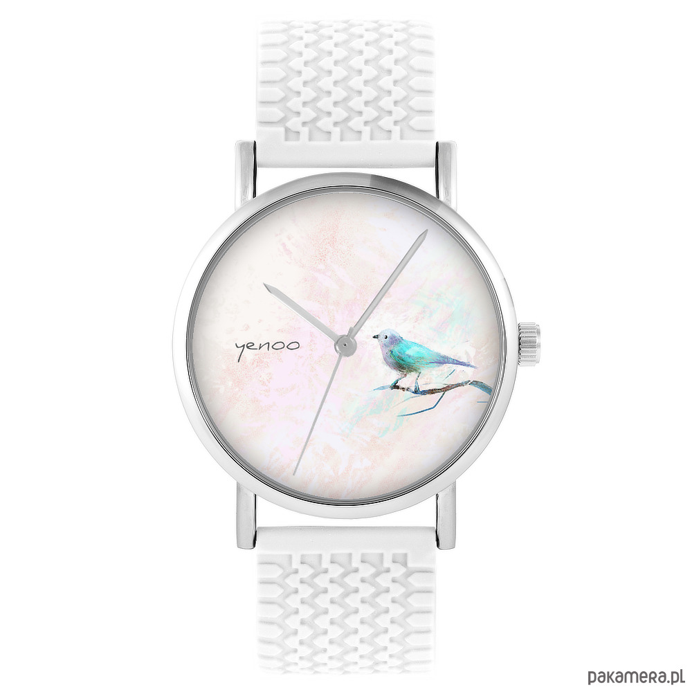 Zegarek - Turkusowy ptaszek - silikonowy, biały