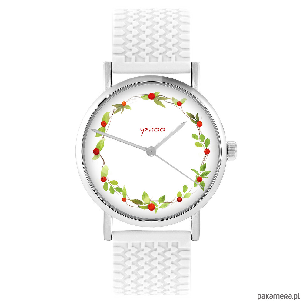 Zegarek - Wianek, dzika róża - silikonowy, biały