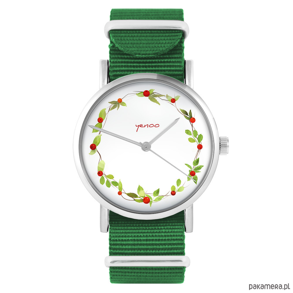 Zegarek - Wianek, dzika róża - zielony, nylonowy