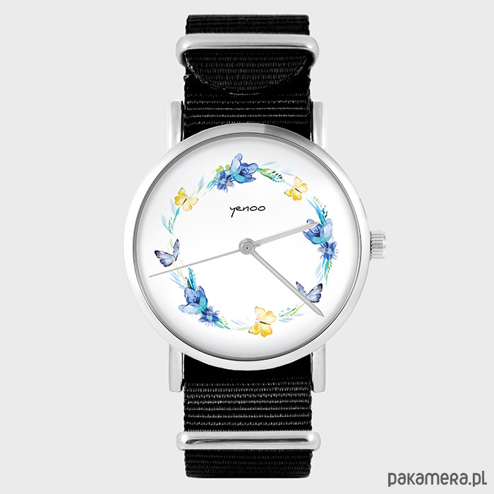 Zegarek - Wianek, motyle - czarny, nylonowy