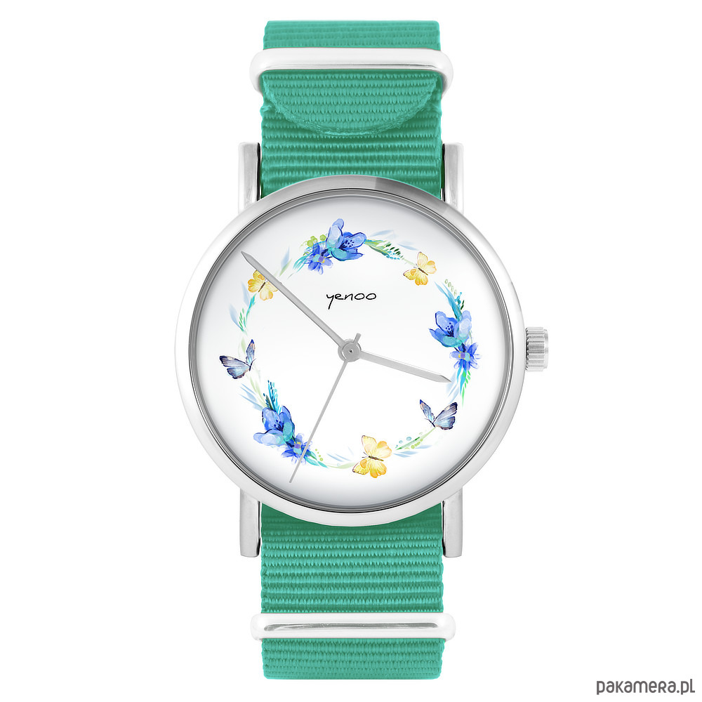 Zegarek - Wianek, motyle - turkusowy, nylonowy