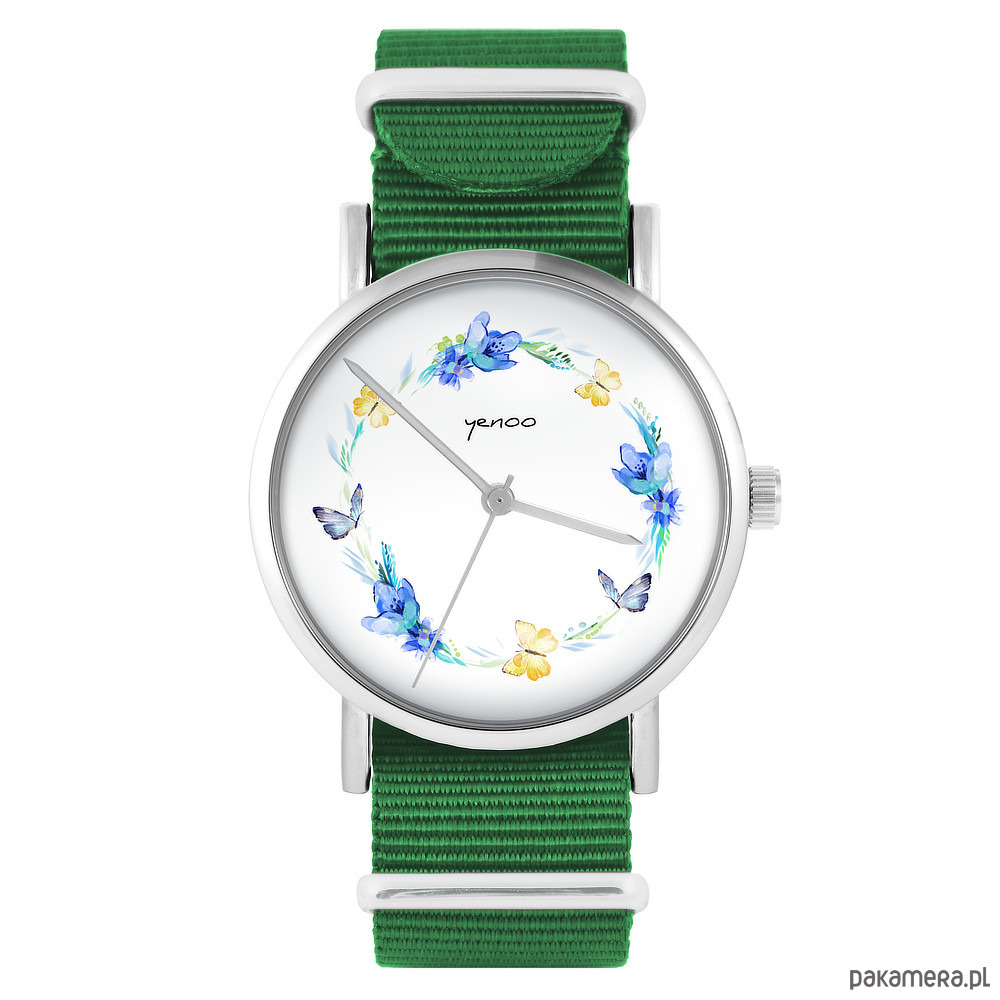 Zegarek - Wianek, motyle - zielony, nylonowy