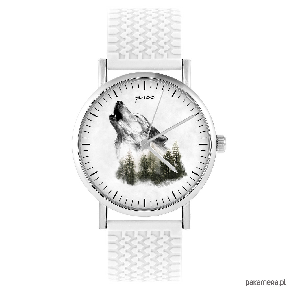Zegarek - Wilk - silikonowy, biały