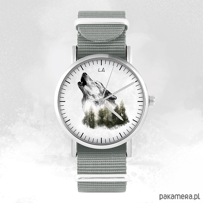 Zegarek - Wilk - szary, nylonowy