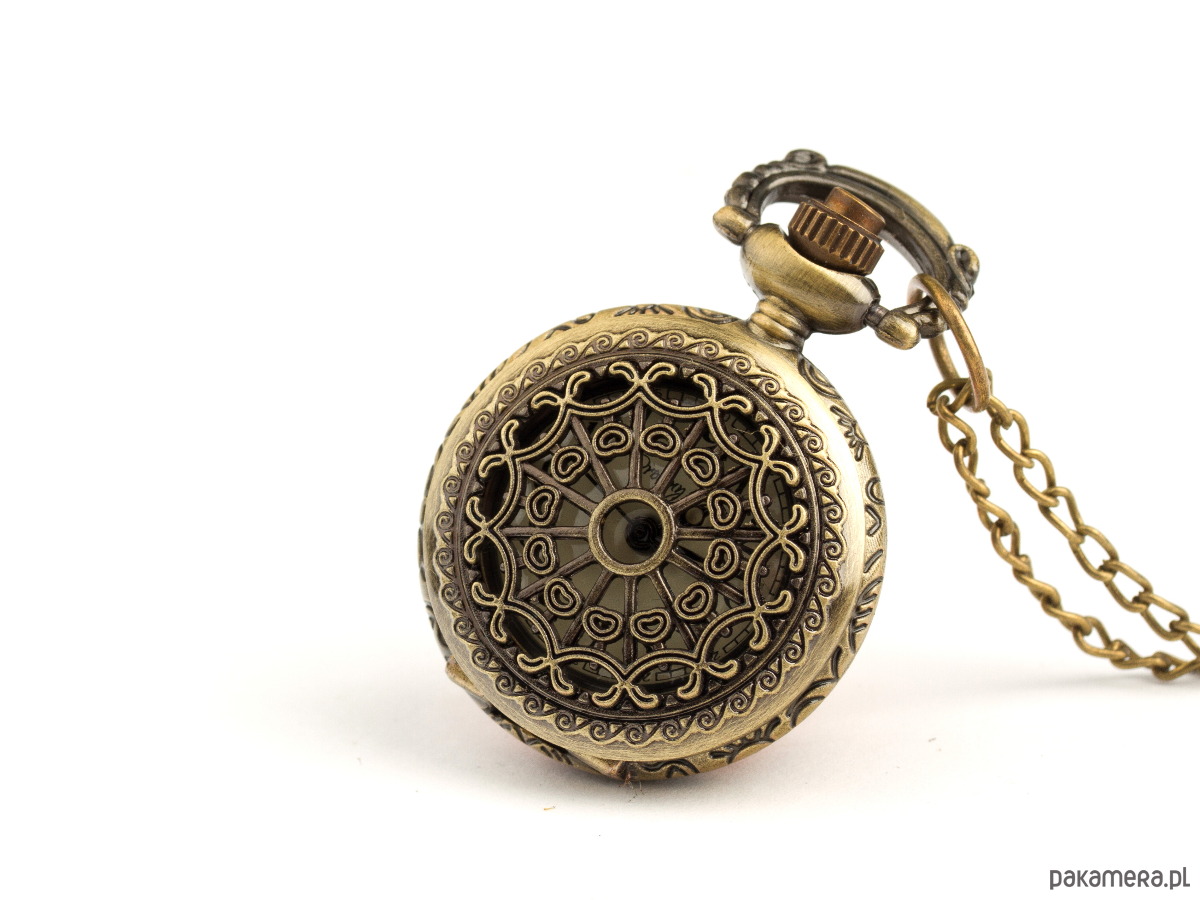 Cóż, jest to jeden z piękniejszych modeli w kolekcji miniatur w stylu vintage. Maleńki, uroczy zegarek obok którego ciężko przejść obojętnym. Wisiorek ten jest idealną miniaturą zegarka z naszej kolekcji, zwanego „Słoneczną energią”. Precyzja wykonania zdobień na kopercie z przodu jak i z tyłu jest na bardzo wysokim poziomie. Pomimo swojej małej wielkości posiada bardzo czytelną, białą tarczę z arabskimi czarnymi cyframi. Urzeka swoim wdziękiem i dodatkowo stanowi świetny dodatek do codziennych kreacji. Zegarek ten ze względu na swoją atrakcyjną cenę stanowi wyjątkowy pomysł na prezent dla najbliższej osoby: ukochanej mamy, córki czy przyjaciółki.Garść danych, które mogą dodatkowo wpłynąć na Twoją decyzję:- Średnica zegarka: 2,5 cm- Grubość zegarka: 1 cm- Materiał zawieszki: Brąz- Materiał obudowy: najwyższej jakości brąz- Długość łańcuszka: 80 cm- Mechanizm: oryginalny japoński mechanizm kwarcowyGratis:- eleganckie pudełeczko na prezent,- łańcuszek do zawieszenia na szyję (80 cm)Dodatki (opcjonalnie do dokupienia):- bransoletka wykonana ręcznie z wysokiej jakości rzemieni dostępna w trzech kombinacjach kolorystycznych (krwiste bordo, karmelowo-beżowy, karmelowo-beżowo-brązowy) (19 cm)- skórzany rzemyk licowy (75 cm)