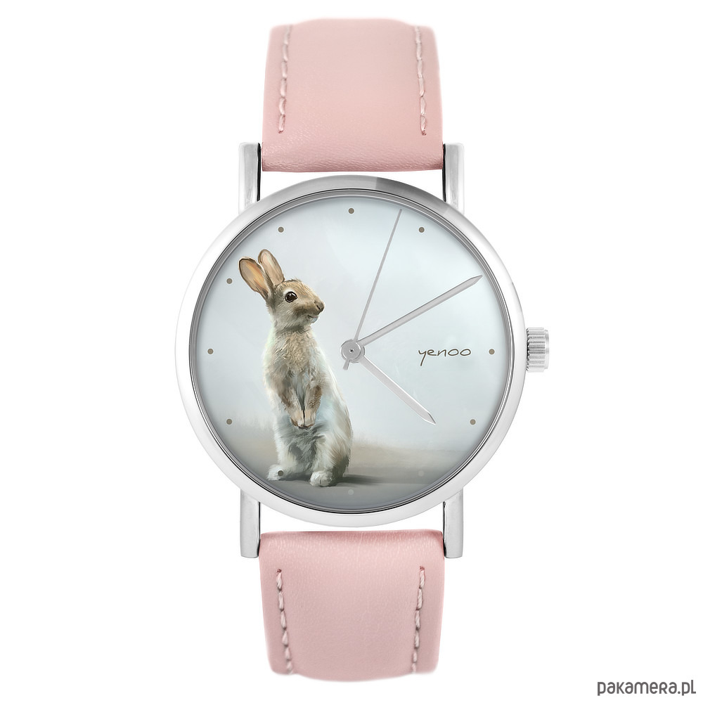 Zegarek - Zając - skóra, pudrowy róż