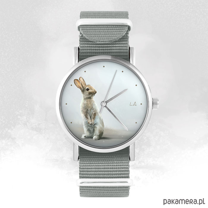 Zegarek - Zając - szary, nylonowy