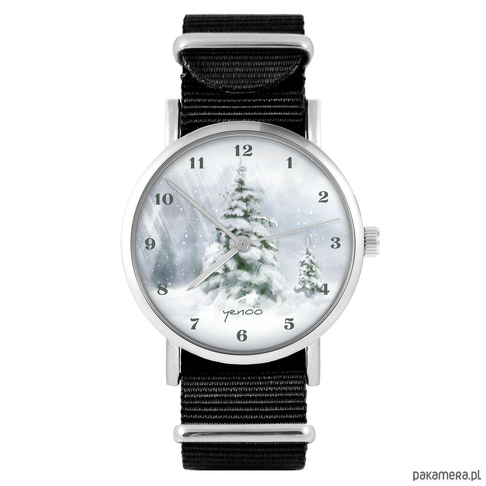 Zegarek - Zimowy, choinka - czarny, nylonowy