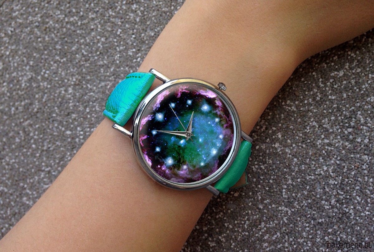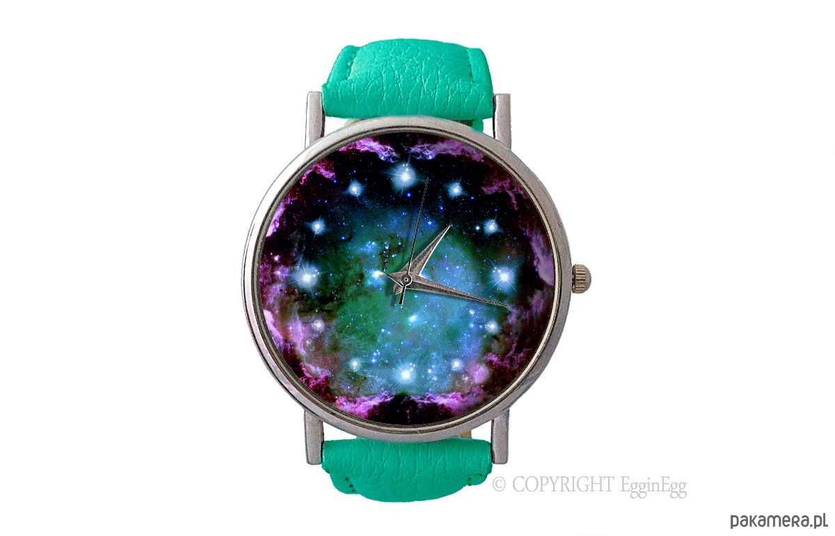Elegancki zegarek ze skórzanym paskiem z autorską grafiką.