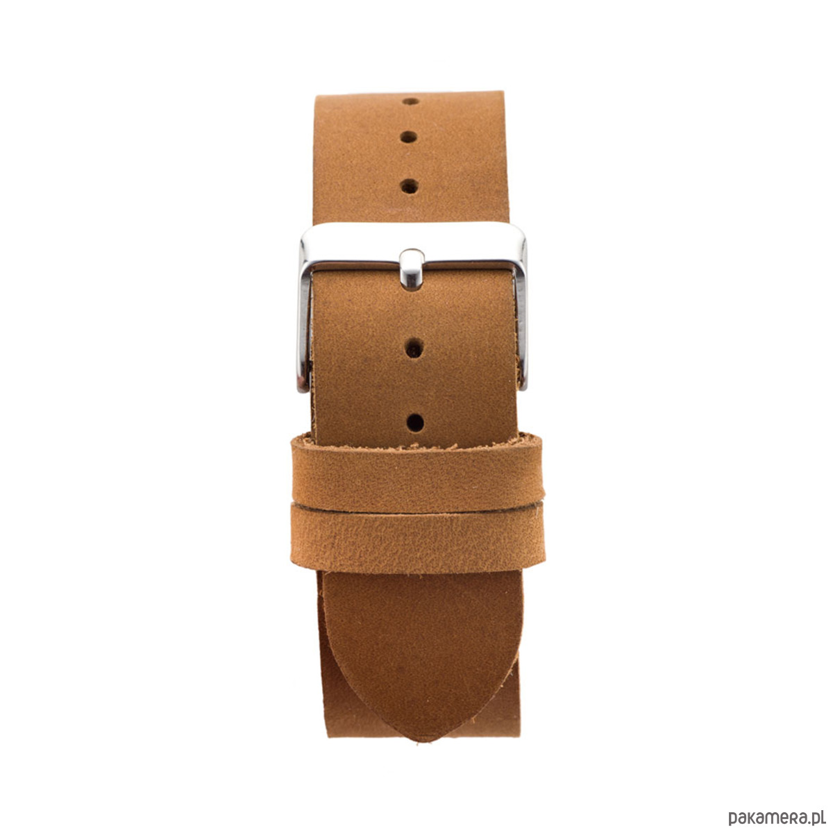 Pasek wykonany jest ze skóry naturalnej i jest regulowany na nadgarstek o obwodzie 16-21 cm.