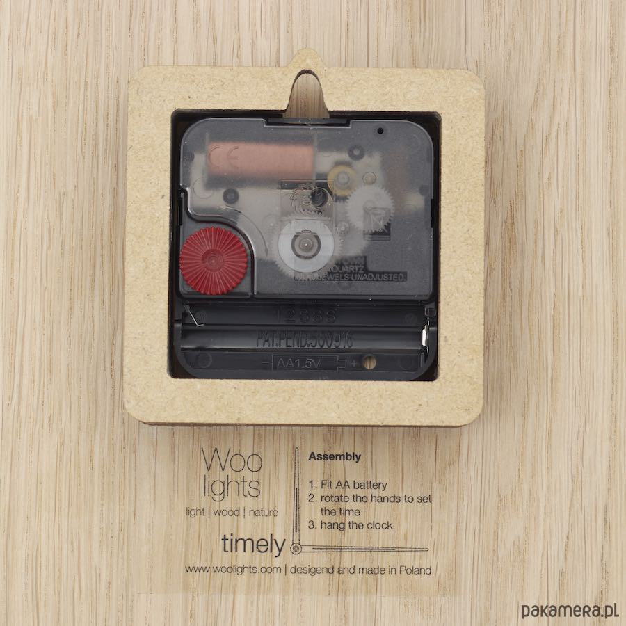 specjalnie zaprojektowane unikalne wskazówki zegara wykonane są ze sklejki,