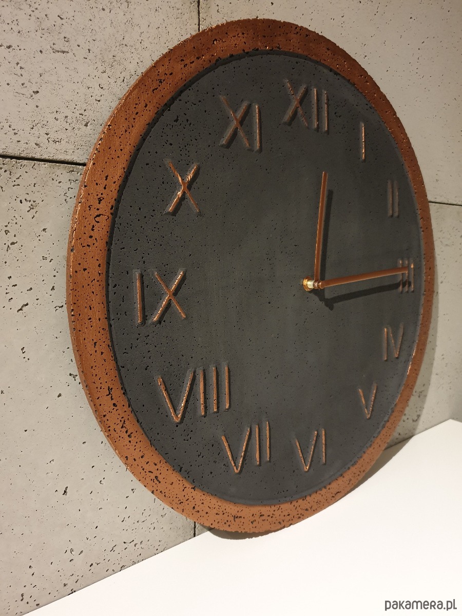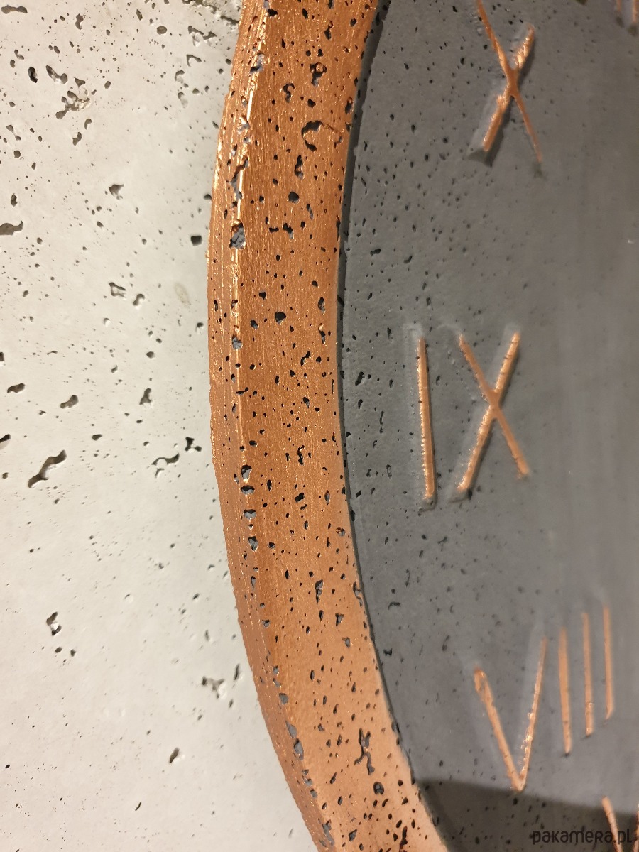 Zegar betonowy cgrafit miedź designerski 45cm