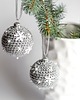 Zestaw 2 uroczych szarych bombek ze srebrną nicią na choinkę.
