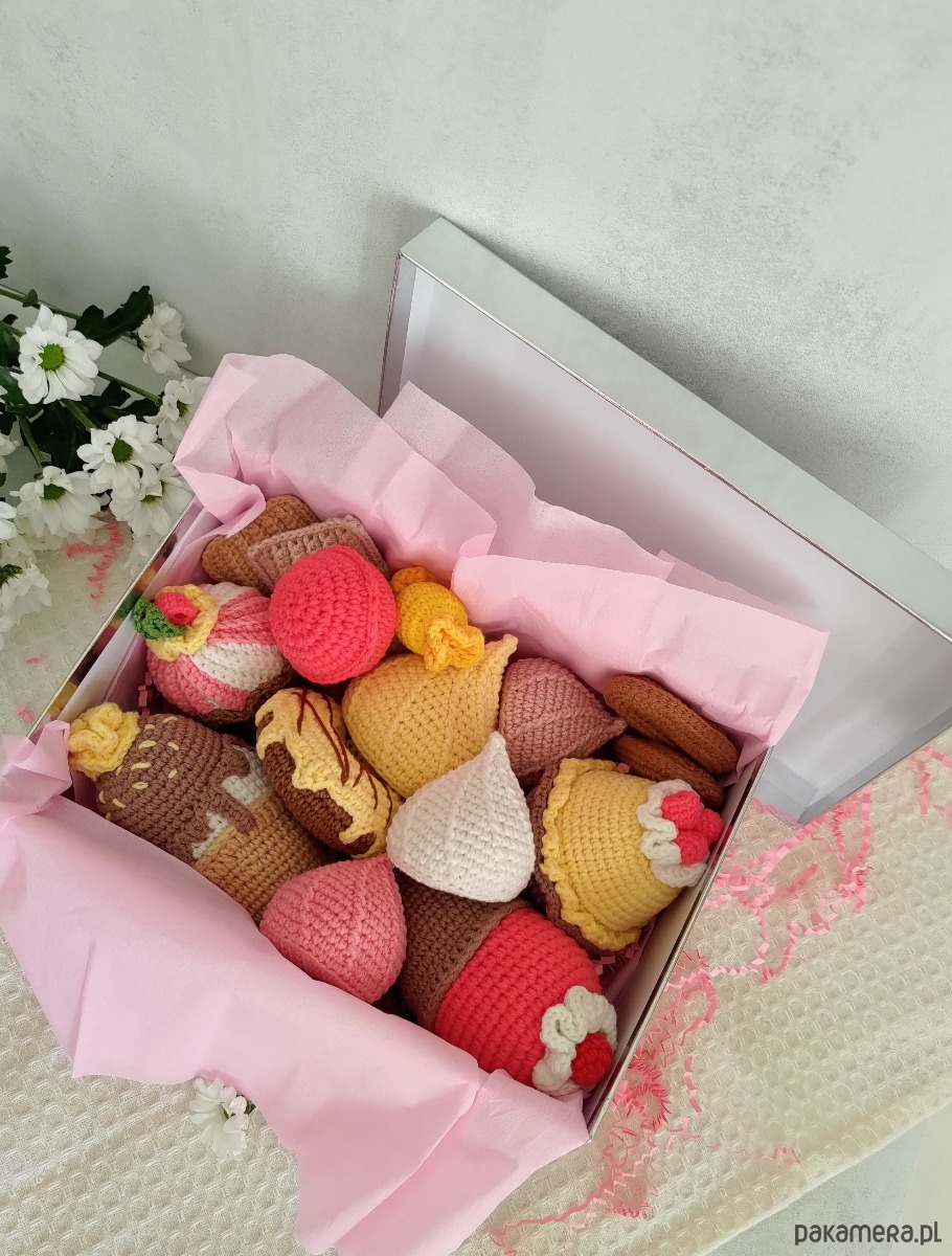Jedną z zalet zestawu szydełkowanych słodyczy jest to, że łatwo można go wyprać ręcznie w ciepłej wodzie, jeśli się zabrudzi.