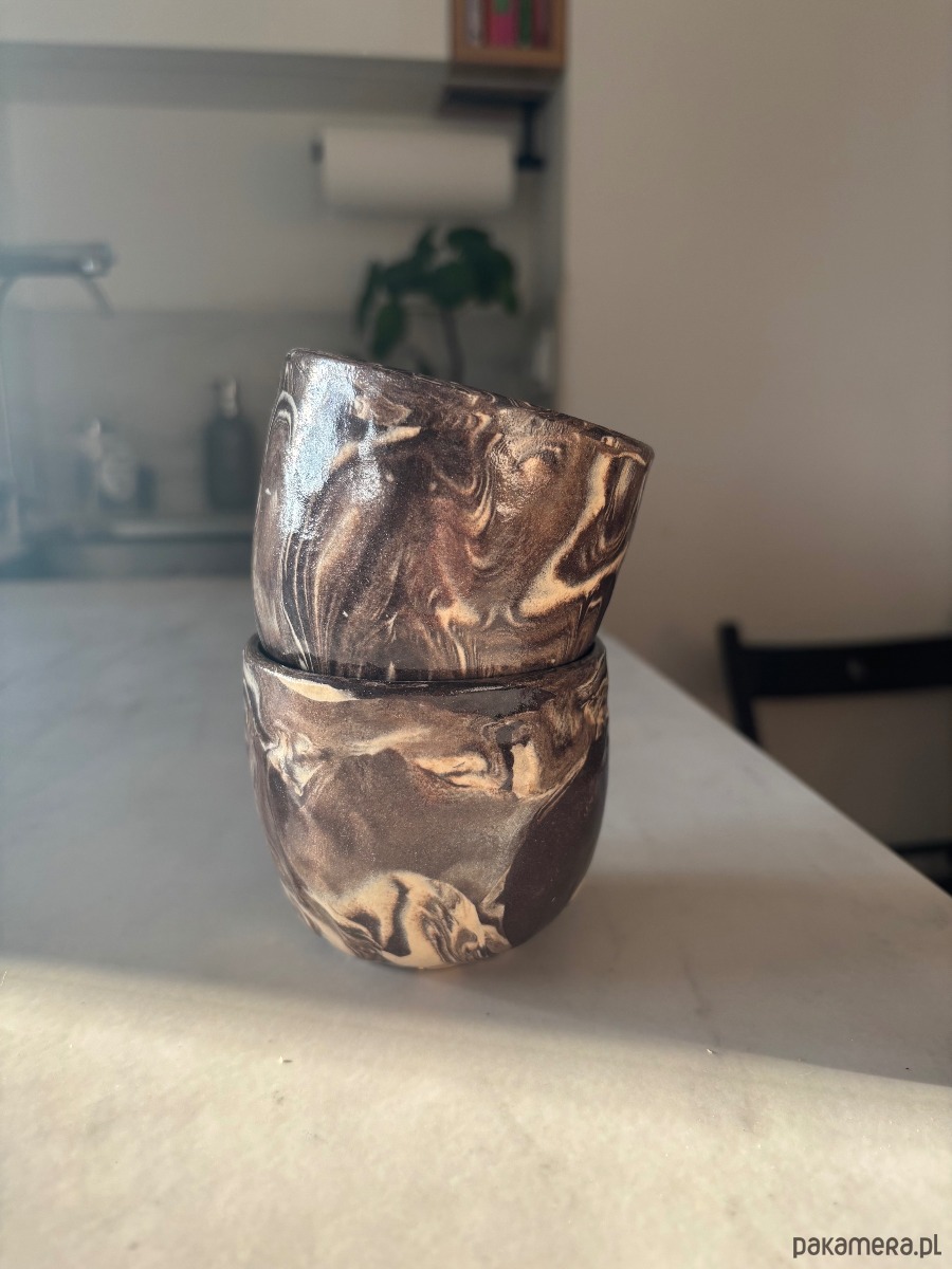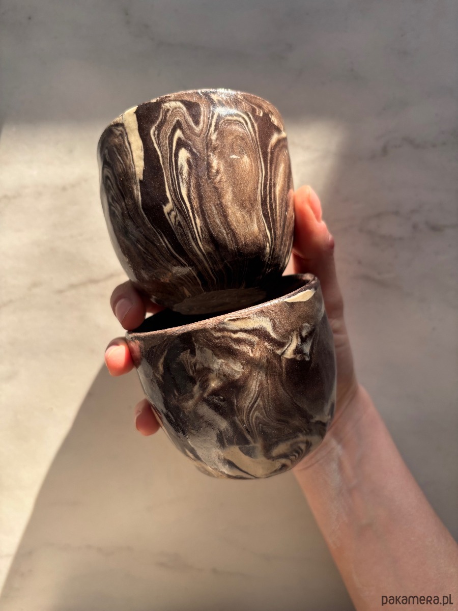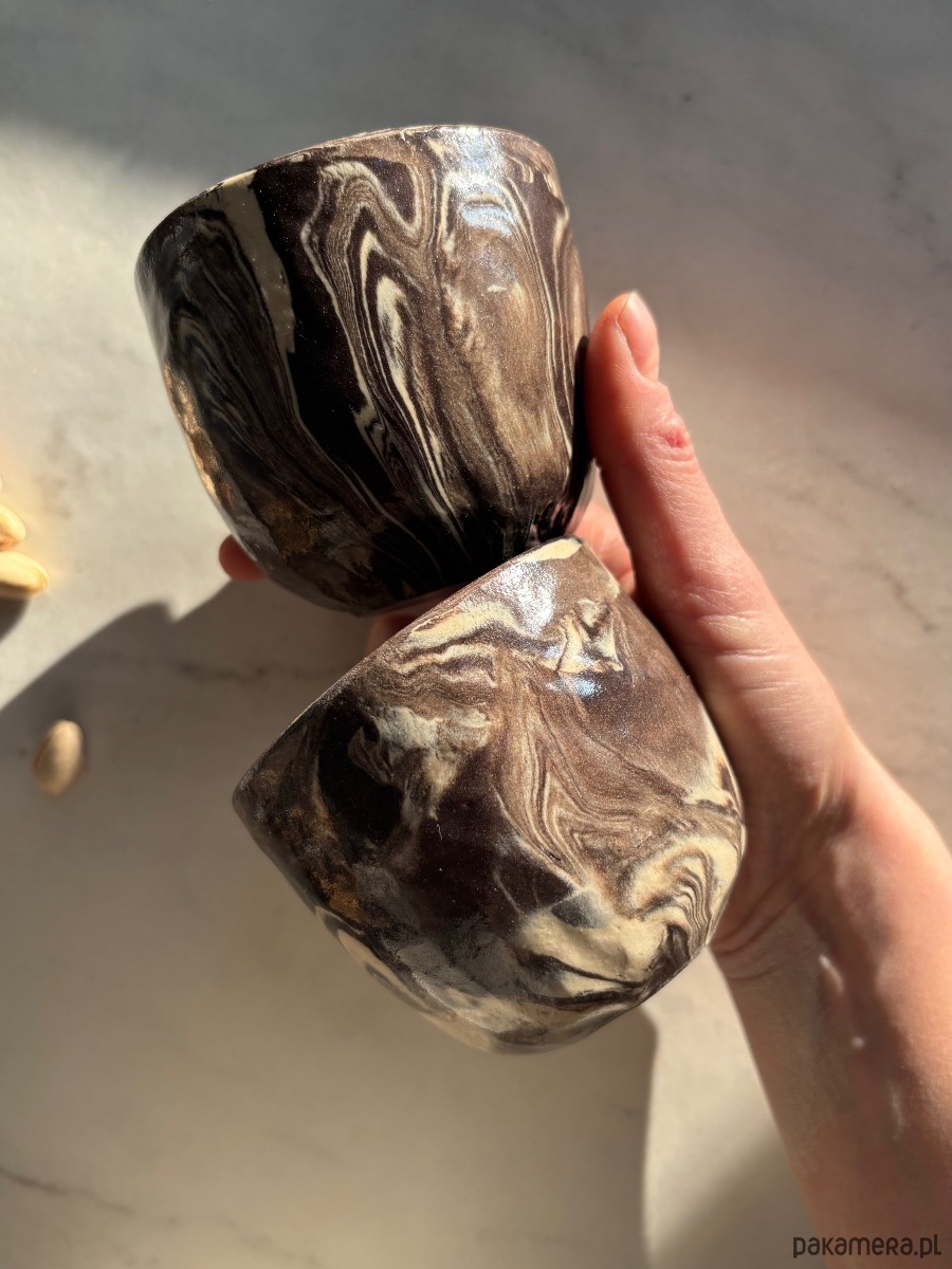 Zestaw 2 ceramicznych czarek ręcznie wykonanych w technice nerikomi o pojemności 220 ml.