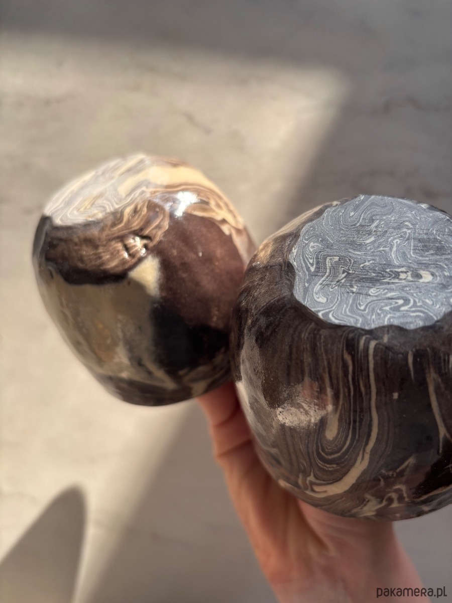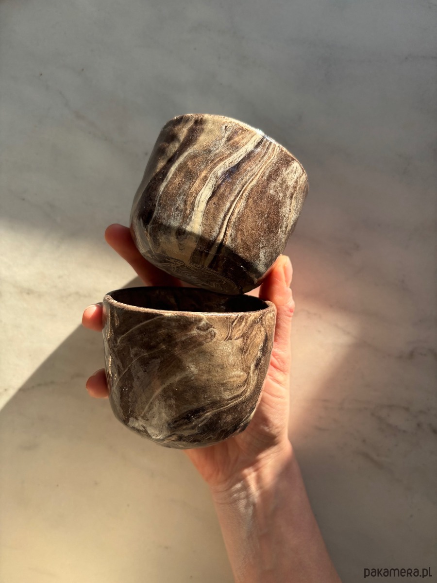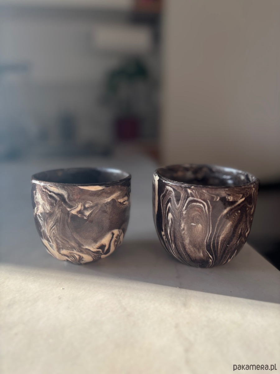 Zestaw 2 ceramicznych czarek ręcznie wykonanych w technice nerikomi o pojemności 220 ml.