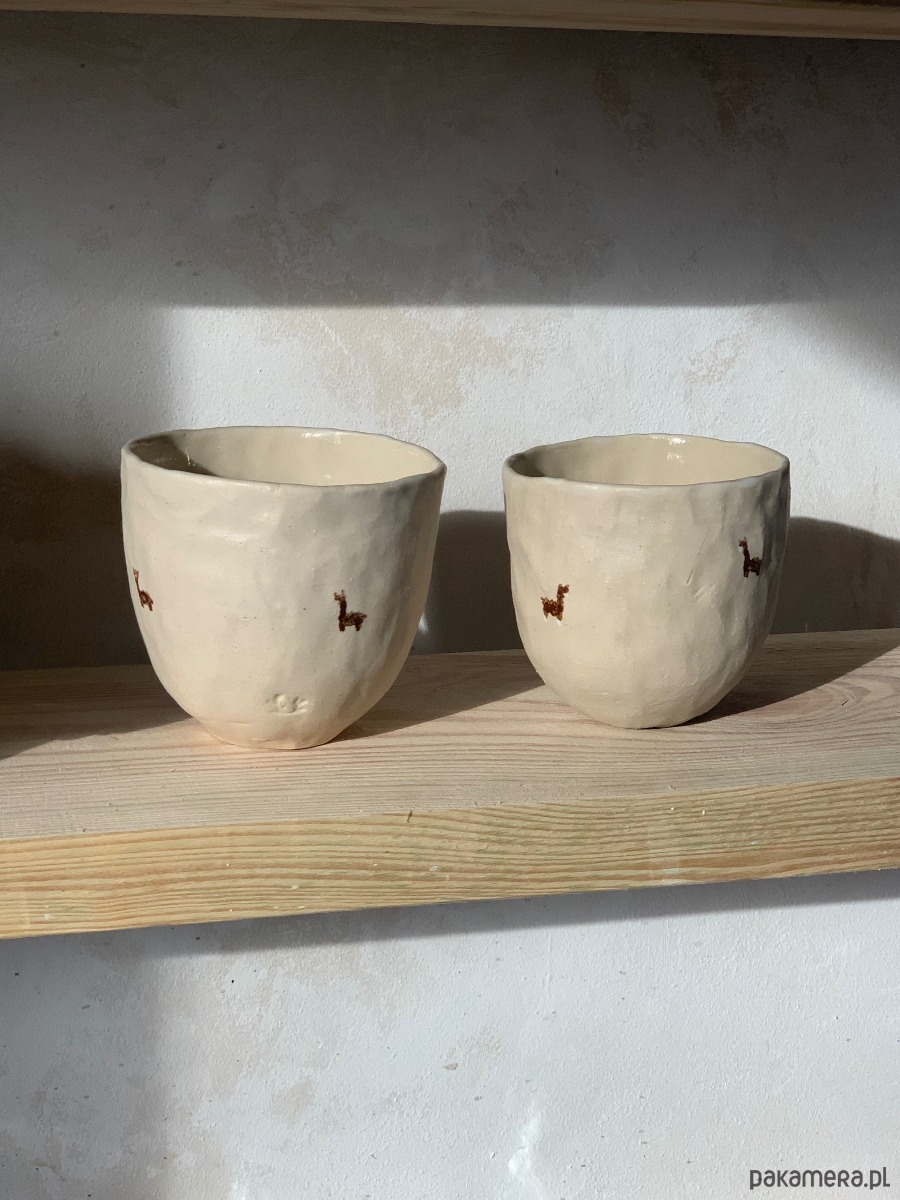Zestaw 2 ceramicznych czarek z ręcznie malowanymi lamami o pojemności 240 ml.