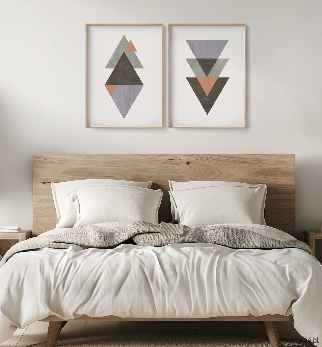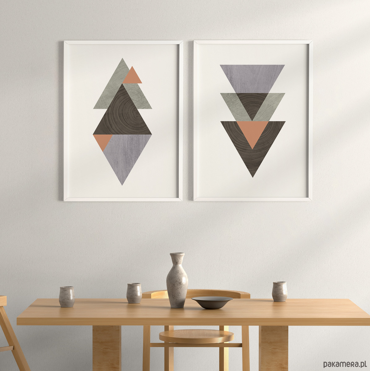 Zestaw 2 geometrycznych grafik na ścianę, skandynawski styl, nordic style.