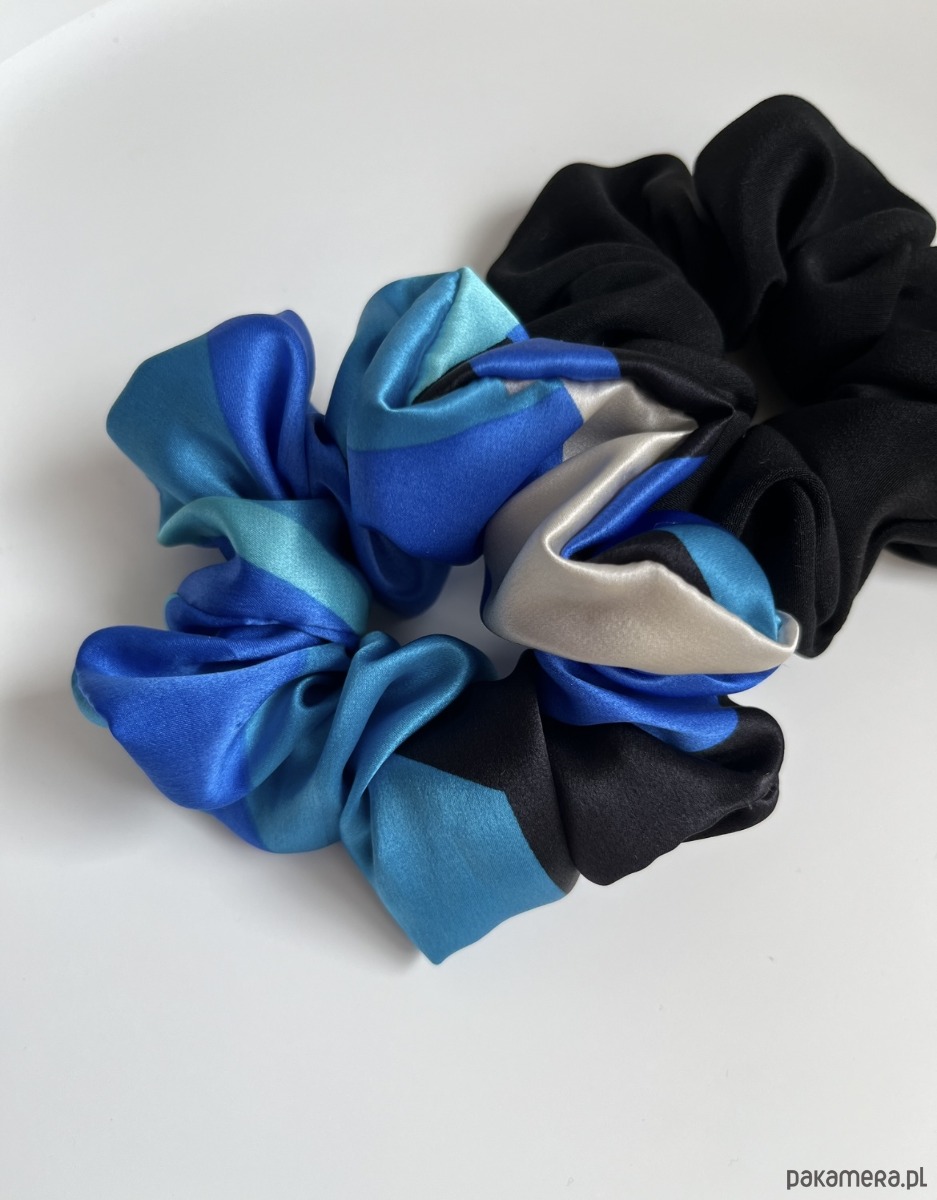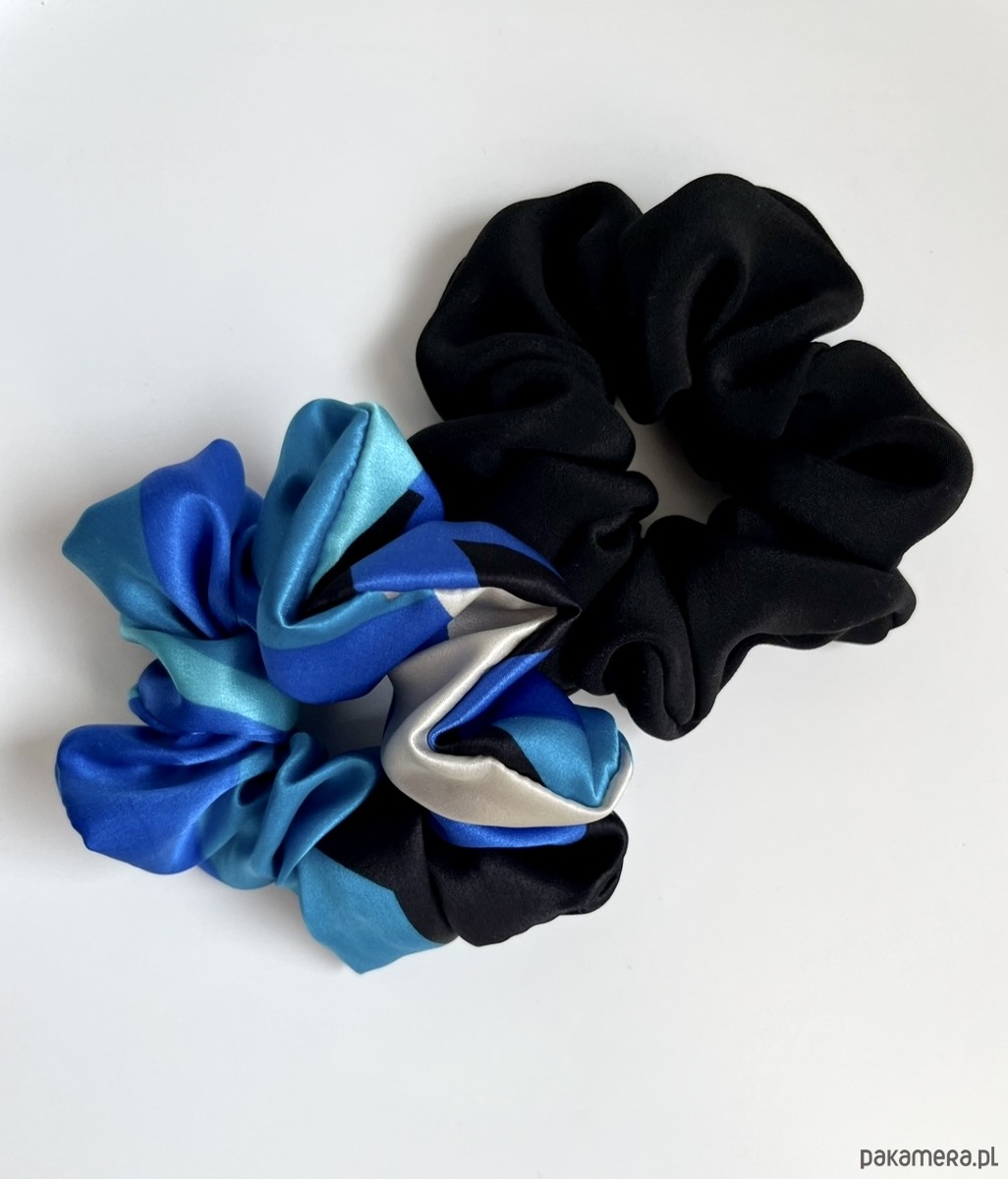 Zestaw 2 jedwabnych gumek scrunchies to duet idealny dla miłośniczek jedwabnych dodatków do włosów.