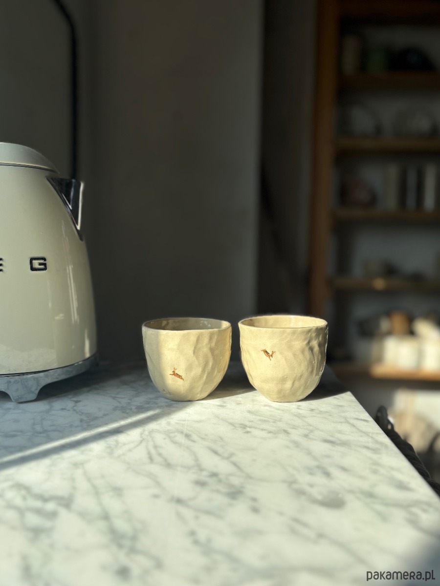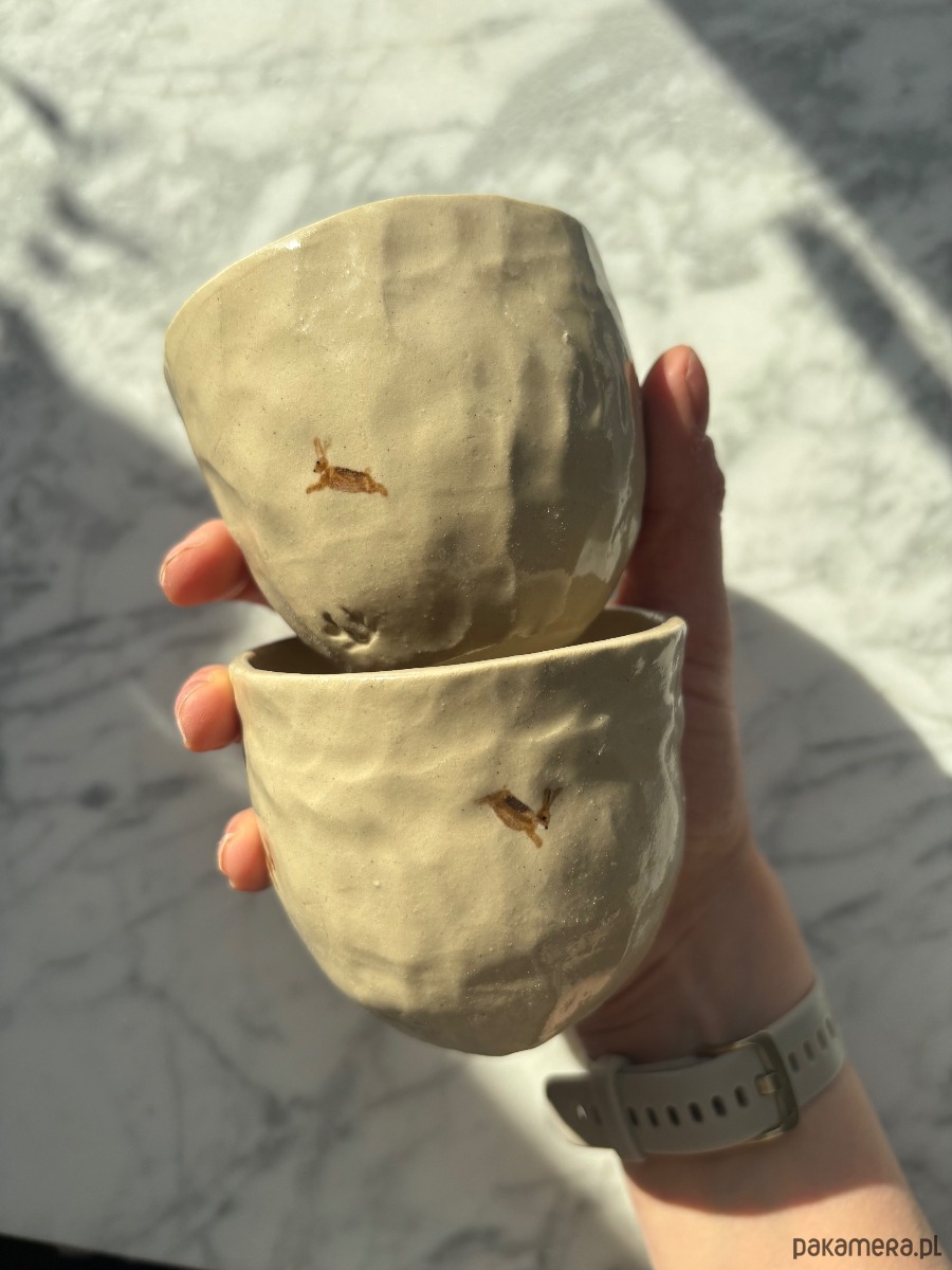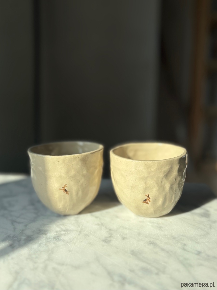 Zestaw 2 Organicznych Ceramicznych Czarek Wabi Sabi z Zającami 175 ml