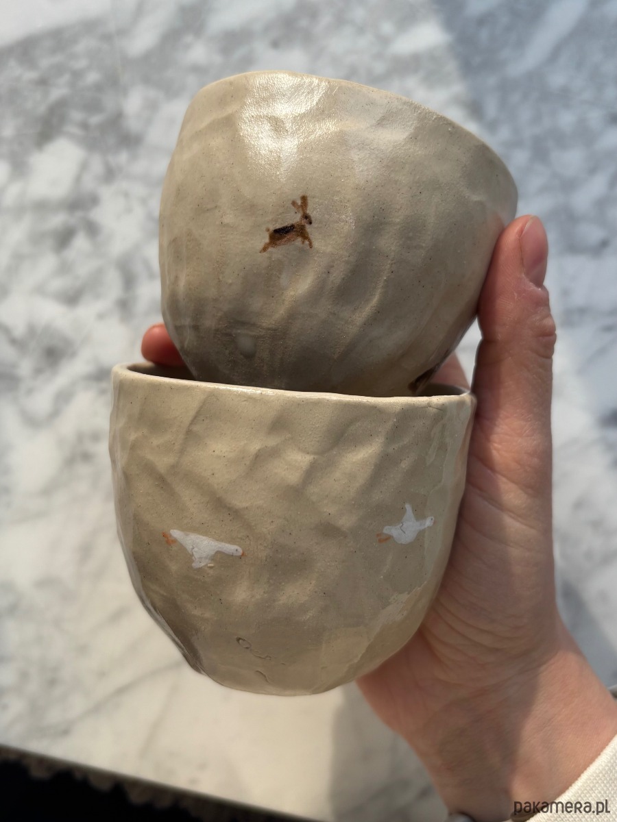 Zestaw 2 Organicznych Ceramicznych Czarek z Zającami i Gąskami 175 ml