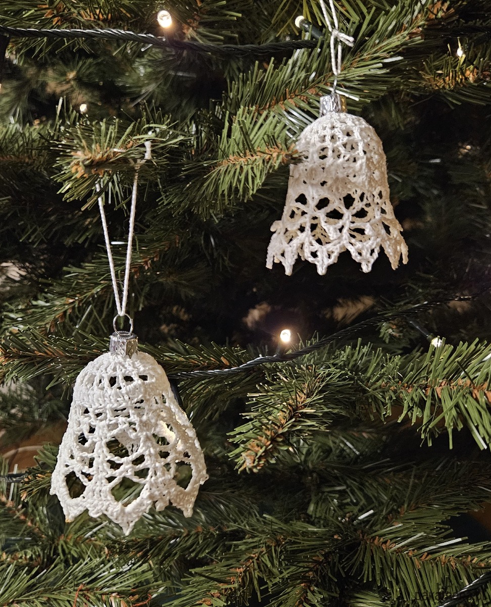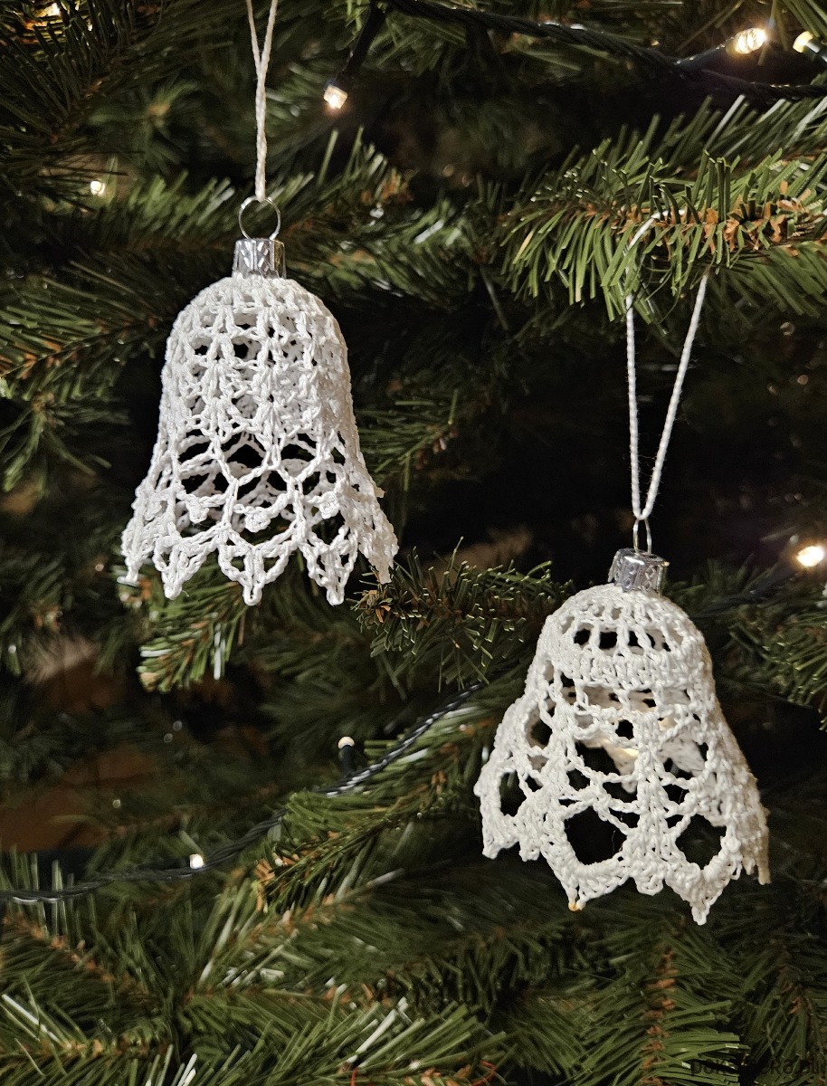 Zestaw 2 ozdób na choinkę - szydełkowe dzwoneczki