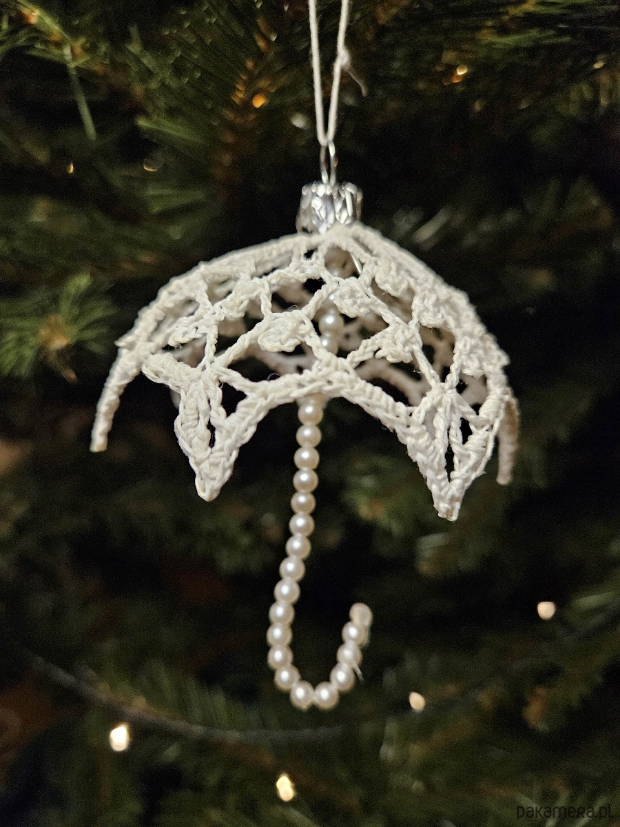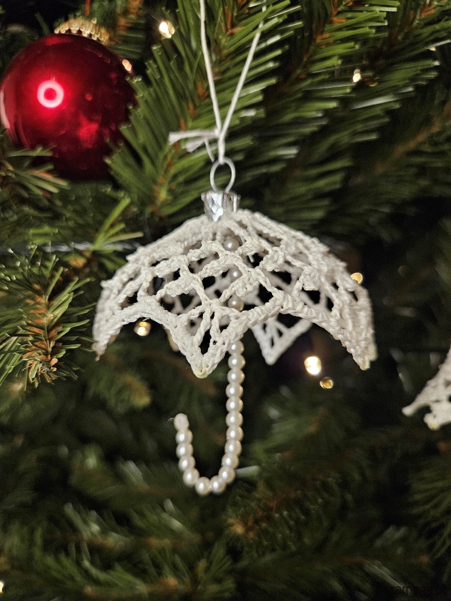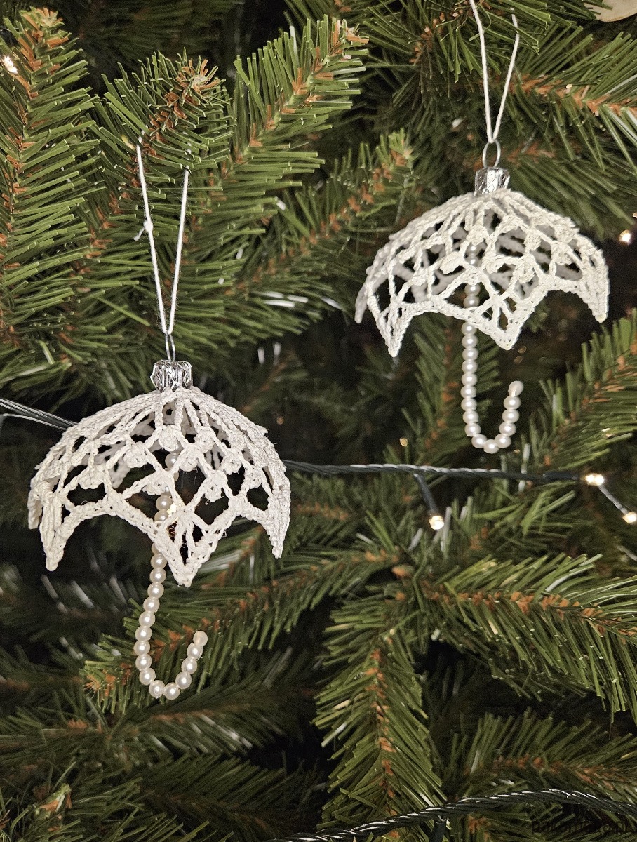 Zestaw 2 ozdób na choinkę - szydełkowe parasolki