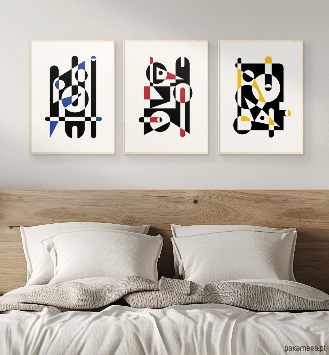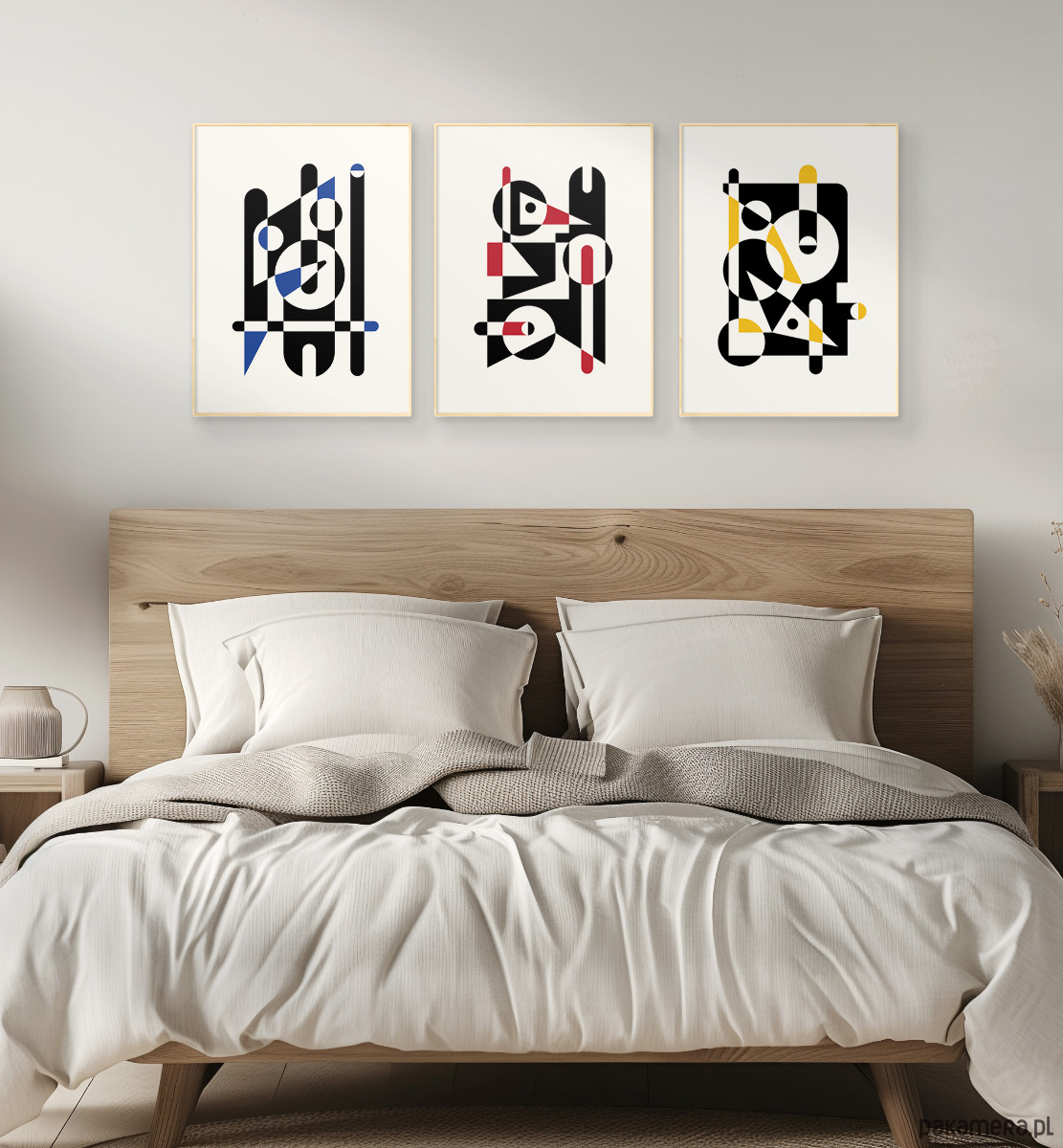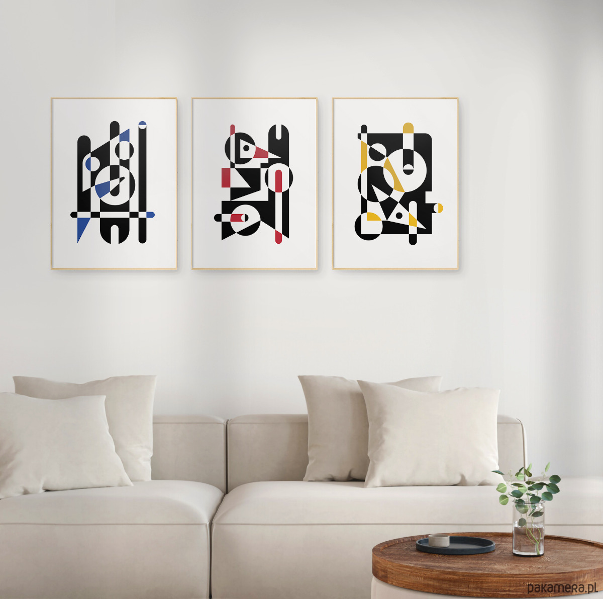 Zestaw 3 abstrakcyjnych plakatów geometrycznych, do salonu, sypialni.