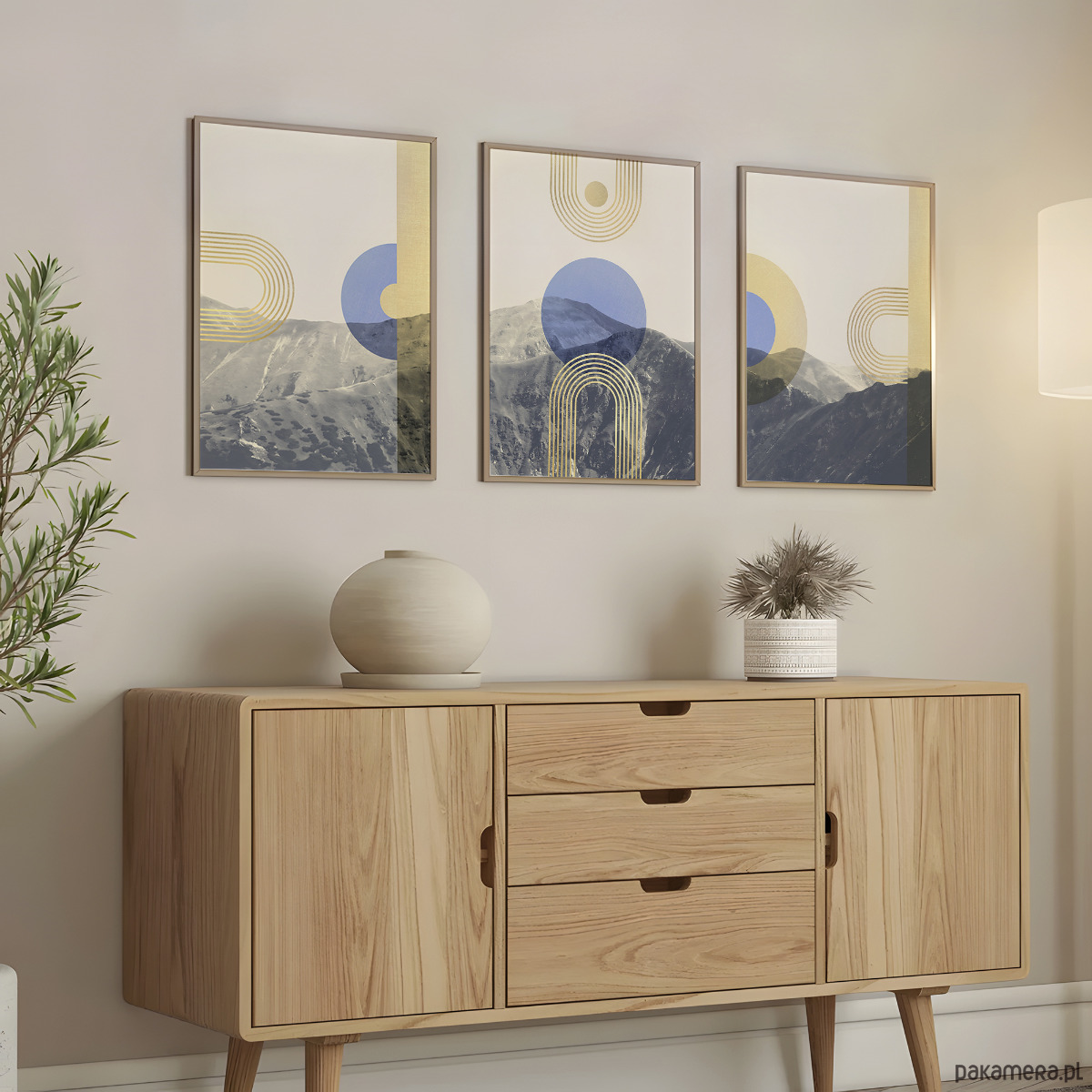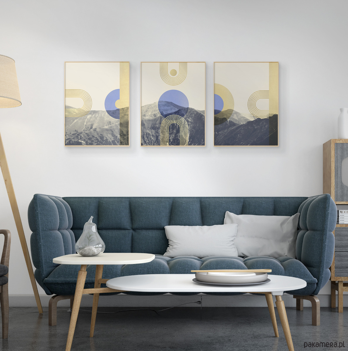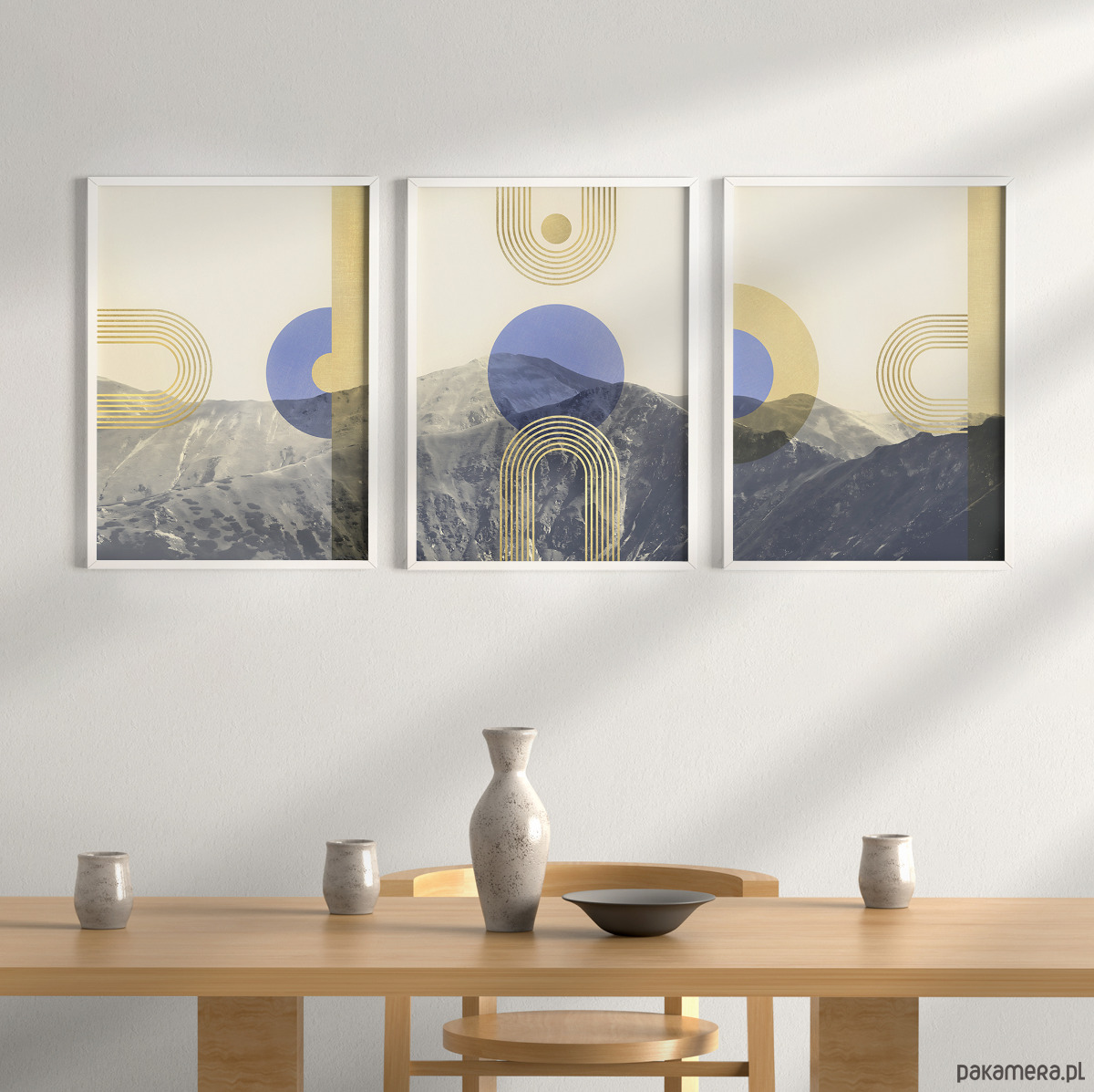 Przedmiotem oferty jest abstrakcyjny zestaw 3 plakatów w formie tryptyku z wizerunkiem Tatr. Ta oryginalna grafika w stylu mid-century, może świetnie odnaleźć się w nowoczesnych, minimalistycznych czy też skandynawskich wnętrzach.