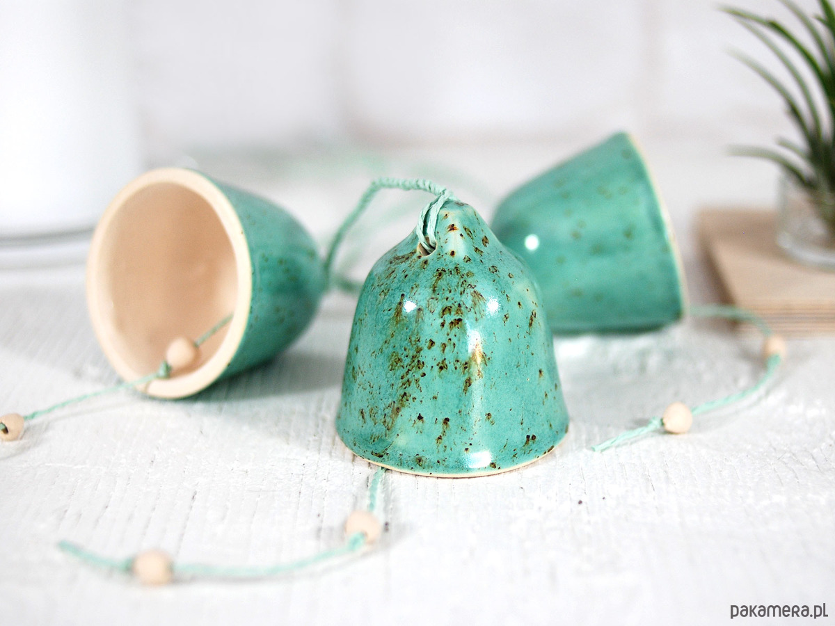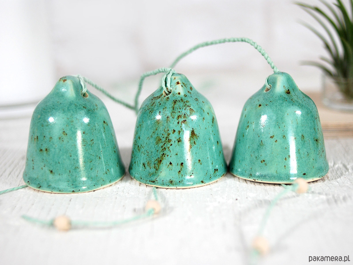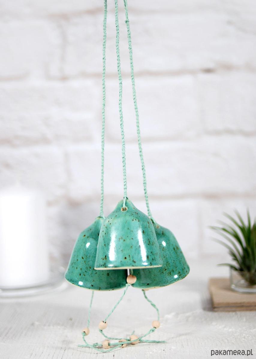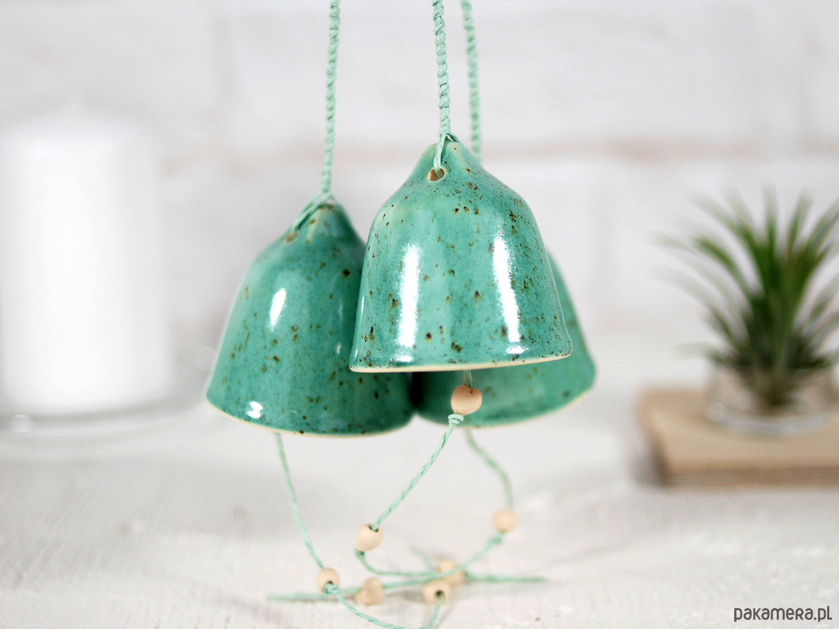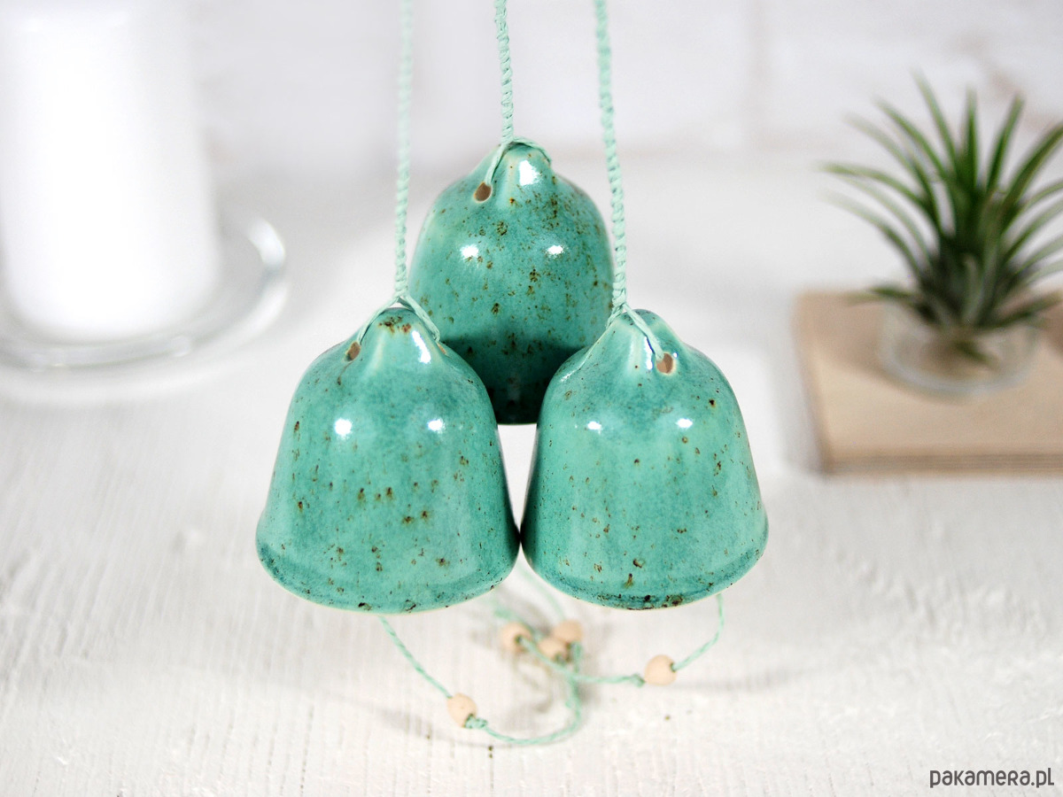 Zestaw zawiera 3 ręcznie robione i malowane, ceramiczne dzwonki.