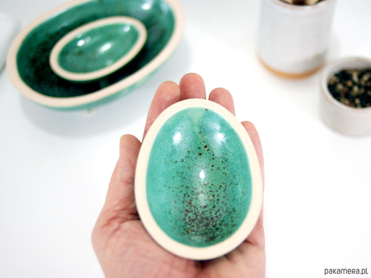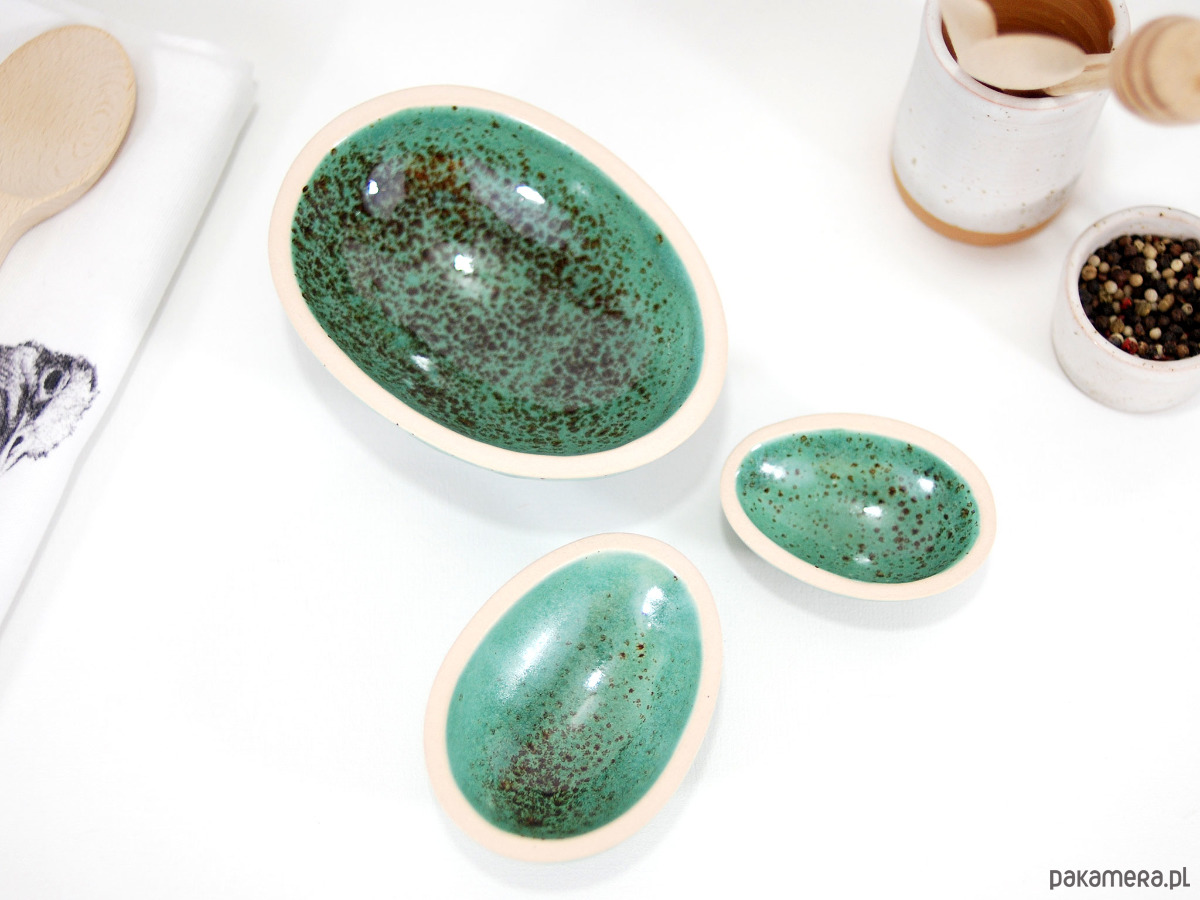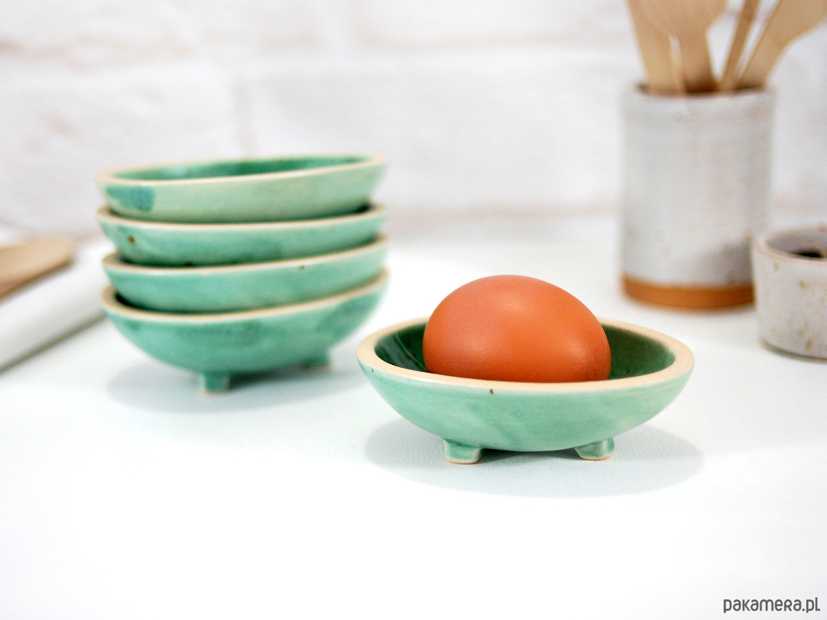 Ręcznie formowane i malowane ceramiczne miseczki możesz wykorzystać do serwowania jajek, sosów, przypraw czy drobnych przekąsek.