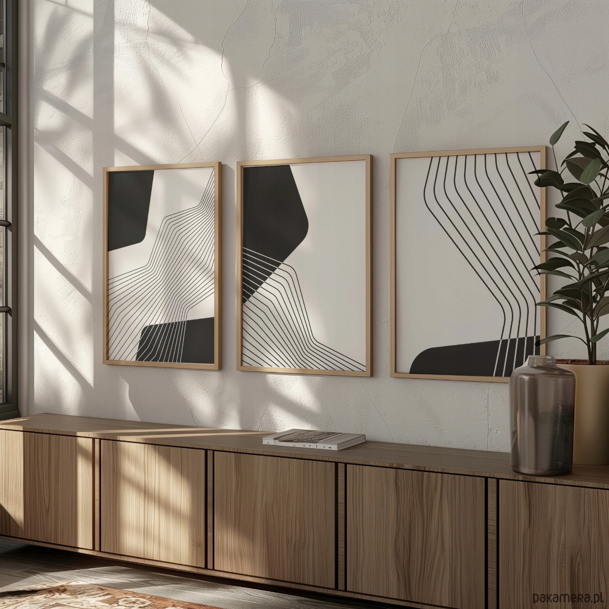 Zestaw trzech geometrycznych plakatów w minimalistycznym stylu. Proste formy i przemyślana kompozycja sprawiają, że grafiki świetnie odnajdą się w nowoczesnych, minimalistycznych oraz loftowych wnętrzach. Grafika może stanowić wyjątkową dekorację salonu, sypialni, biura czy pracowni.
