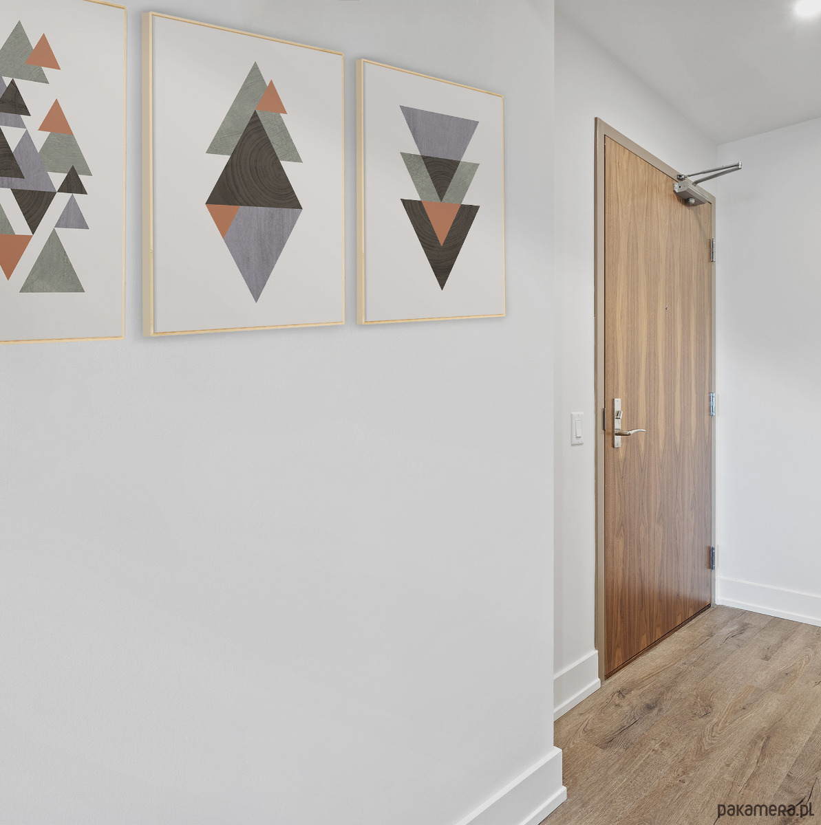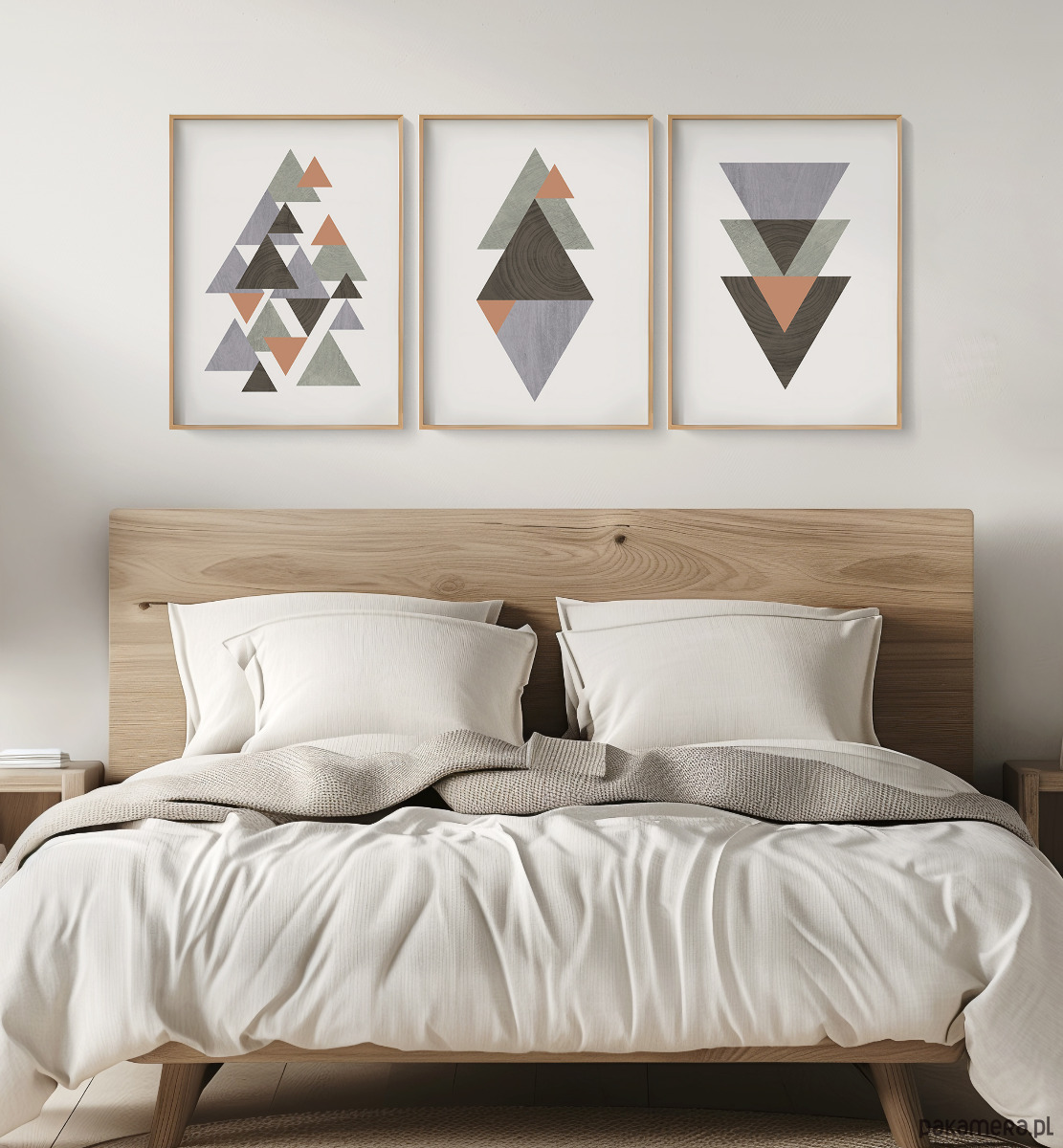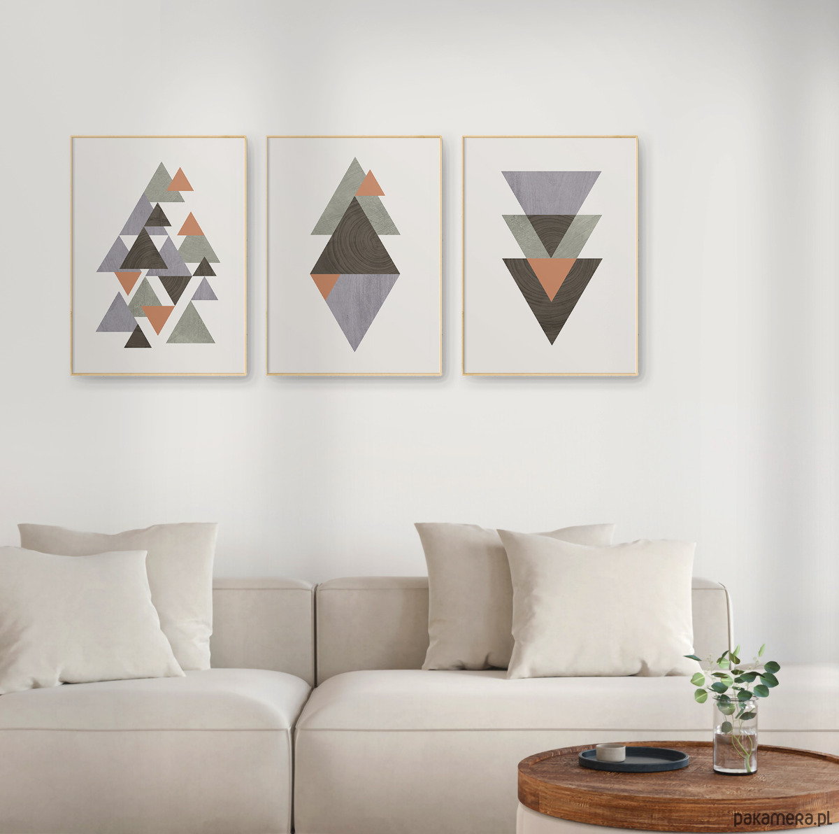 Zestaw 3 autorskich plakatów/grafik inspirowany stylem skandynawskim z elementami tekstury drewna. Geometryczne formy oraz przemyślana kolorystyka tworzą spójną kompozycję, która dobrze odnajdzie się we współczesnych, nowoczesnych i minimalistycznych wnętrzach. Plakaty mogą stanowić świetną dekorację ścian w biurze, salonie, sypialni, przedpokoju czy też kuchni, dodając wnętrzu elegancji i stylowego charakteru.