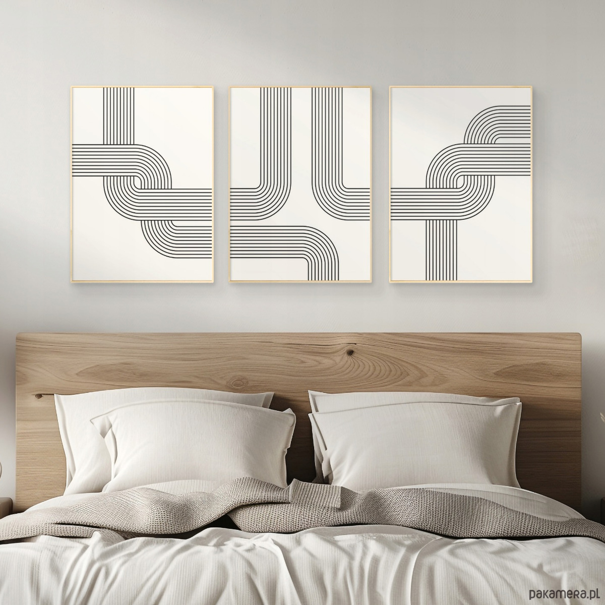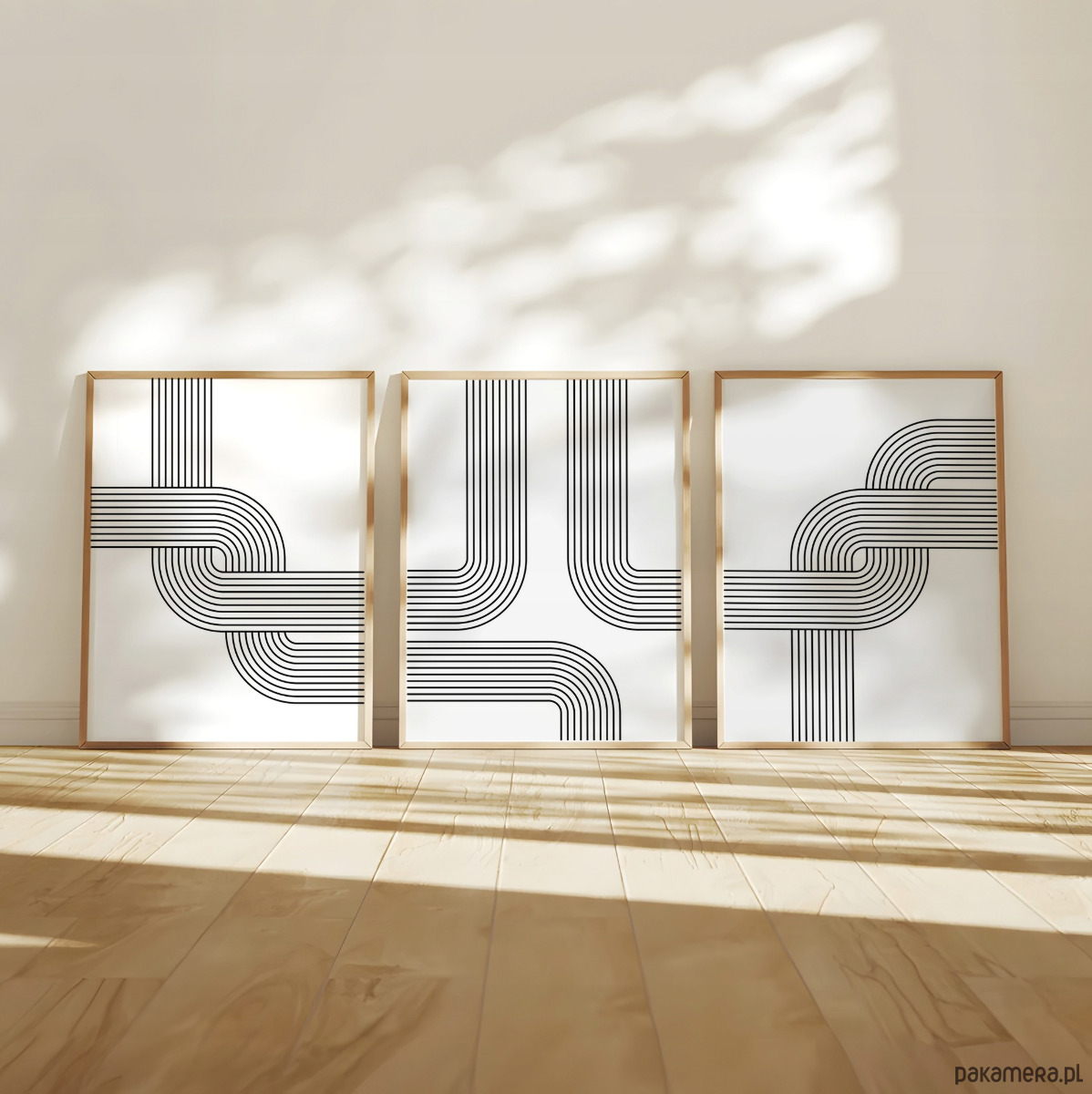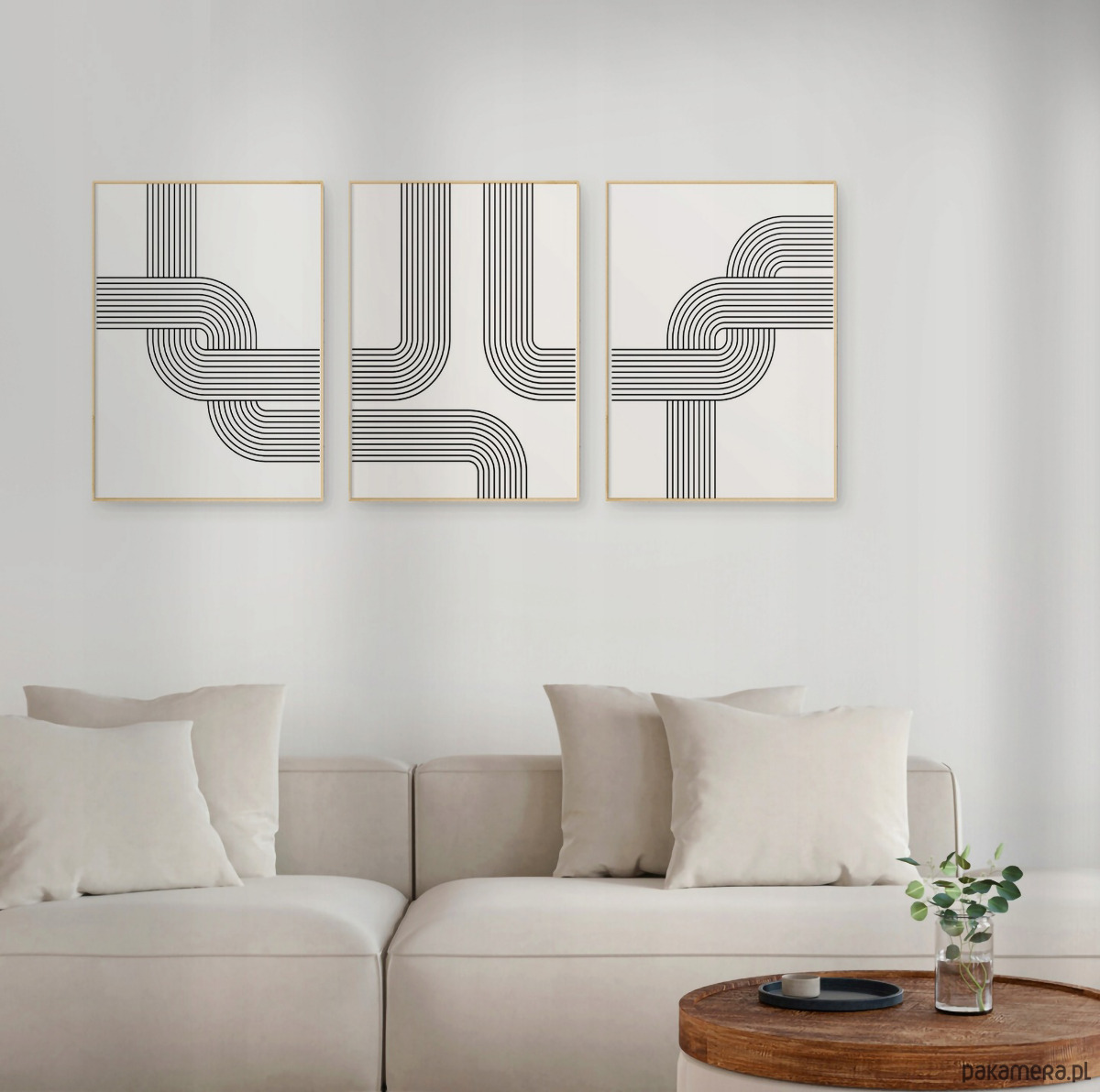Zestaw 3 geometrycznych plakatów liniowych, do salonu, sypialni.